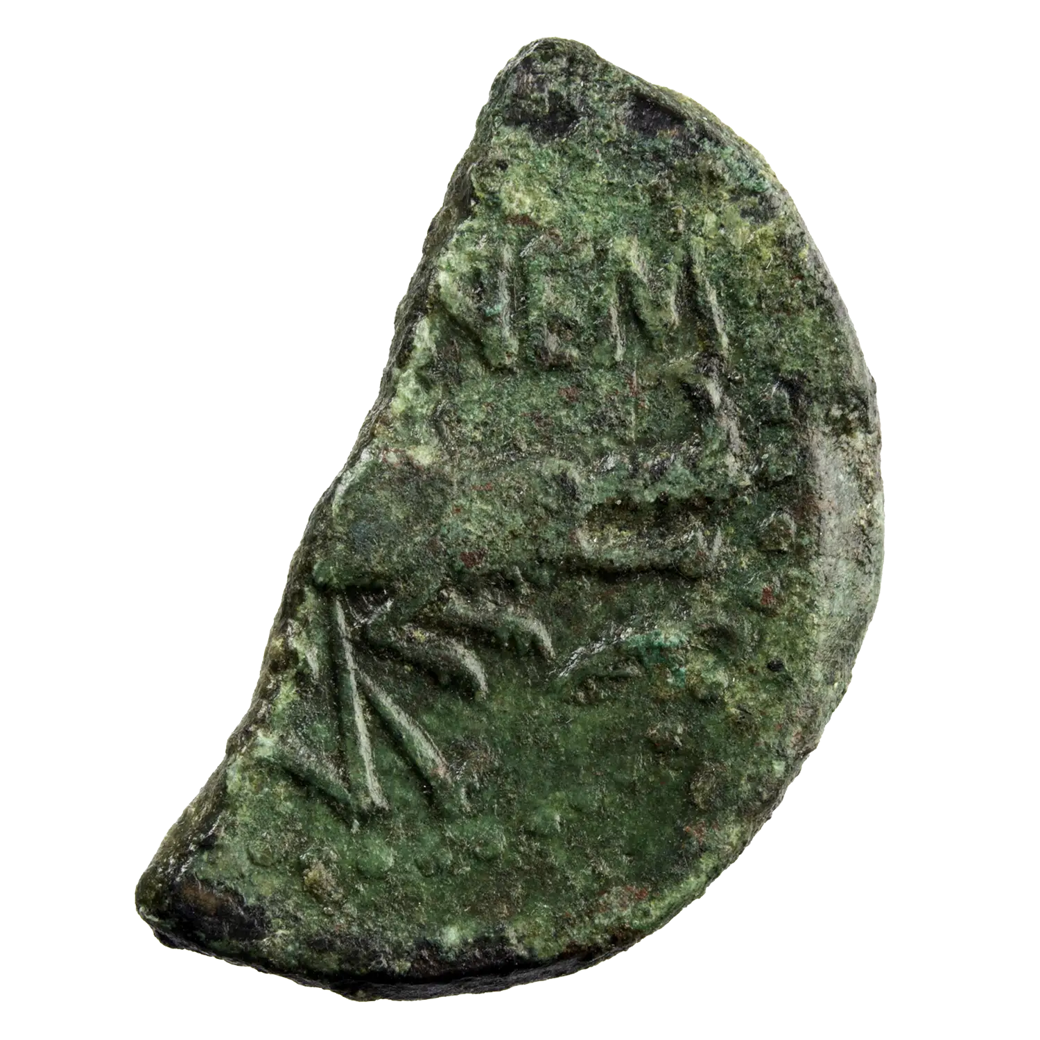 Demi-dupondius de Nîmes (Nemausus) : ces monnaies ont été découpées dans l’Antiquité afin de pallier le manque de petite monnaie en circulation.