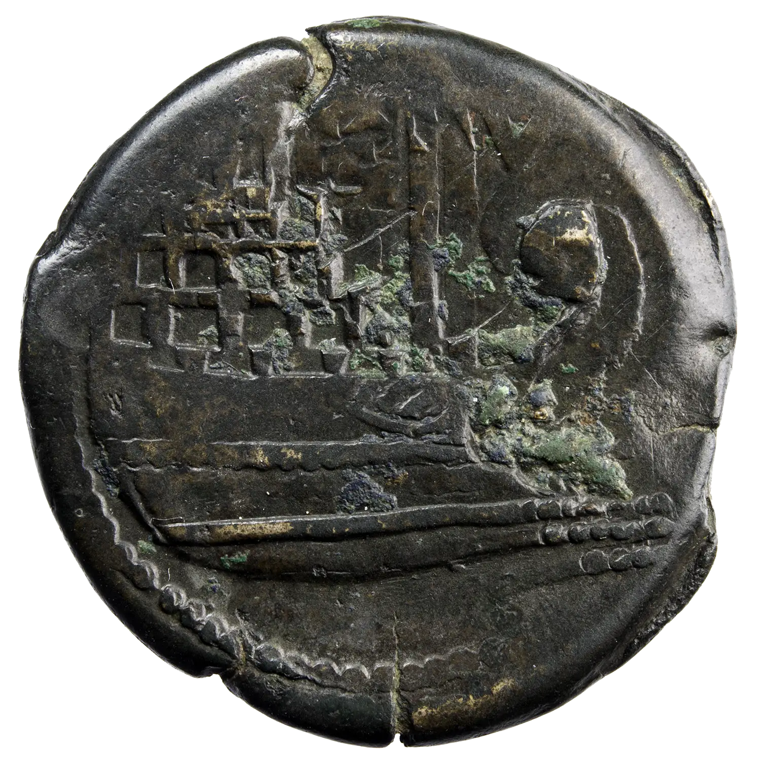 Monnaie coloniale romaine frappée à Vienne en Gaule en 36 avant JC. Têtes accolées de Jules Cesar et d’Octave point entre les 2 têtes à l’avers. Vendu avec sa vieille etiquette.