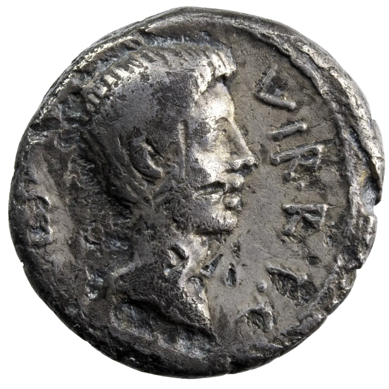 Denier en argent d’Octave futur Auguste frappé en 42 avant JC en Italie. Monnaie rare et intéréssante de faible qualité malheureusement
