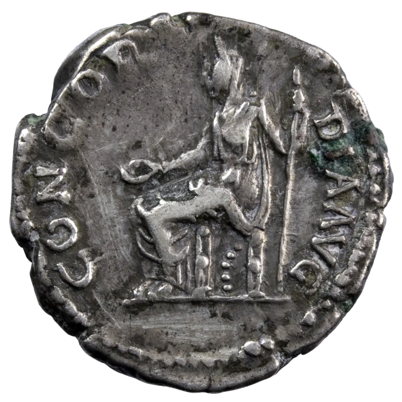 Denier en argent de Sabine la femme de l’empereur romain Hadrien. Monnaie frappée en 130-133 à Rome. La concorde au revers