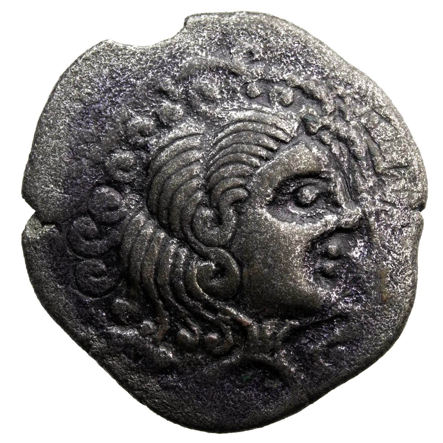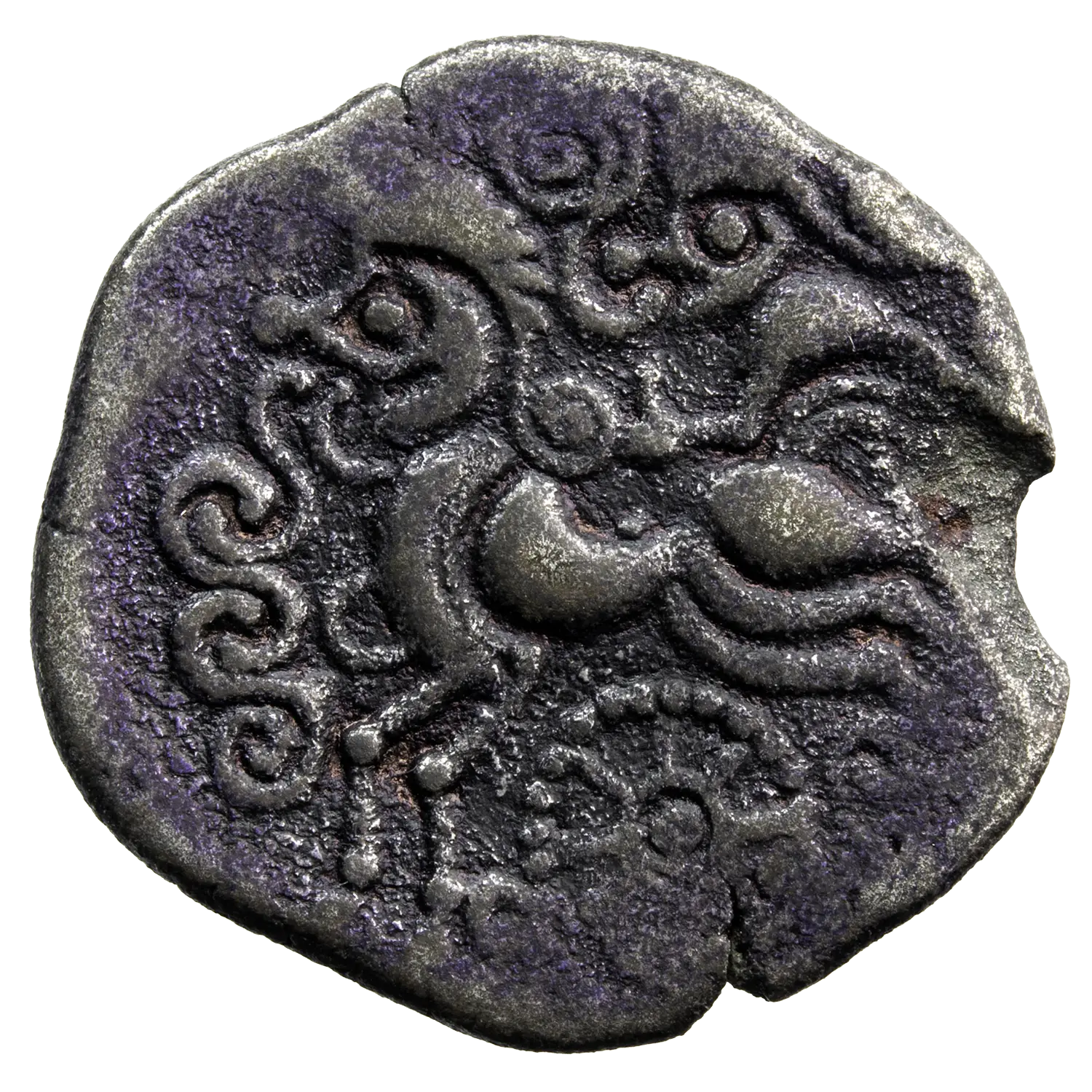 Cet exemplaire provient du trésor de Piolaine découvert en 2011 à Saint-Aubin-du-Pavail, dont une partie est entrée au MAN (réf. 6579-7066) et dont la partie du propriétaire a été dispersée à Drouot le 5 mars 2020. L’esse sortant de la bouche de l’aurige est assez exceptionnelle et ne se retrouve dans la part publiée du trésor, du Musée des Antiquités Nationales, que sur quatre exemplaires (n° 7042, 7044-7045 et 7056).