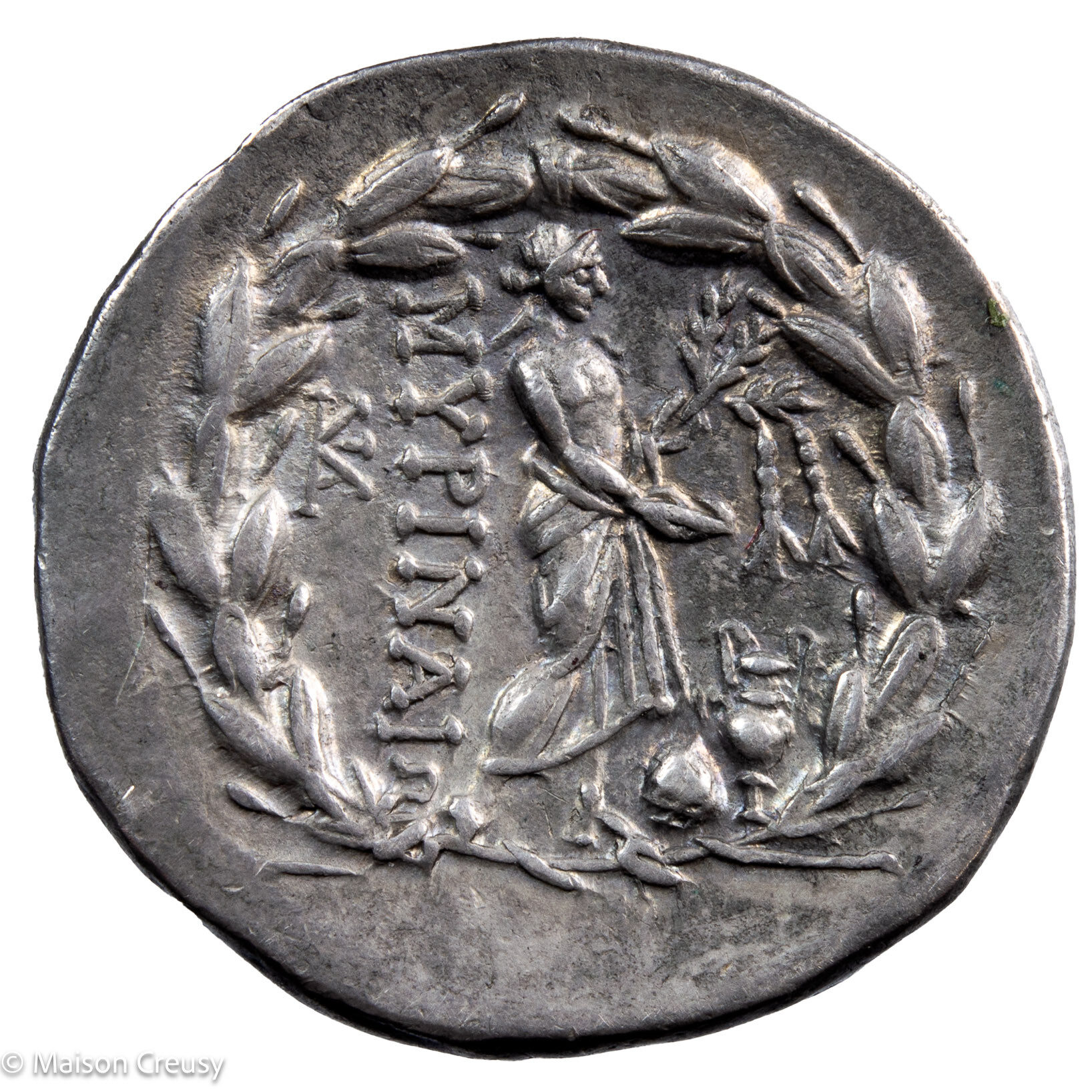 | Description revers | Apollon Grynios debout vers la droite, monogramme KAI derrière |