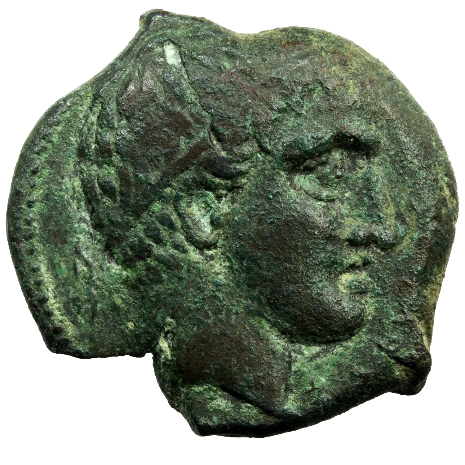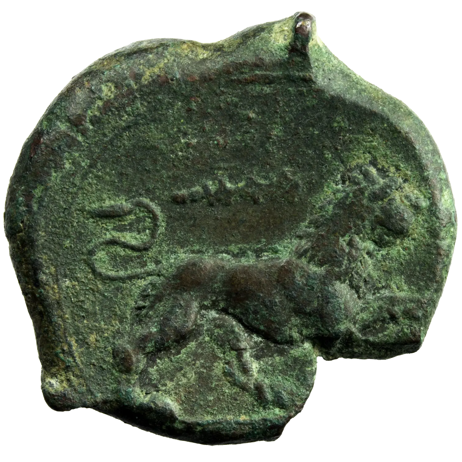 Bronze de Syracuse frappé sous la quatrième démocratie vers 289-287 avant JC. Tête d’Herakles jeune à l’avers et Lion avec une massue au dessus au revers
