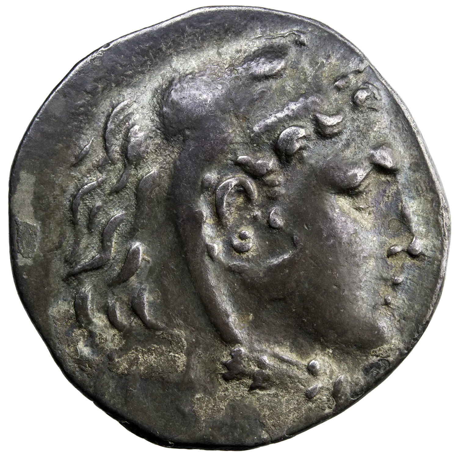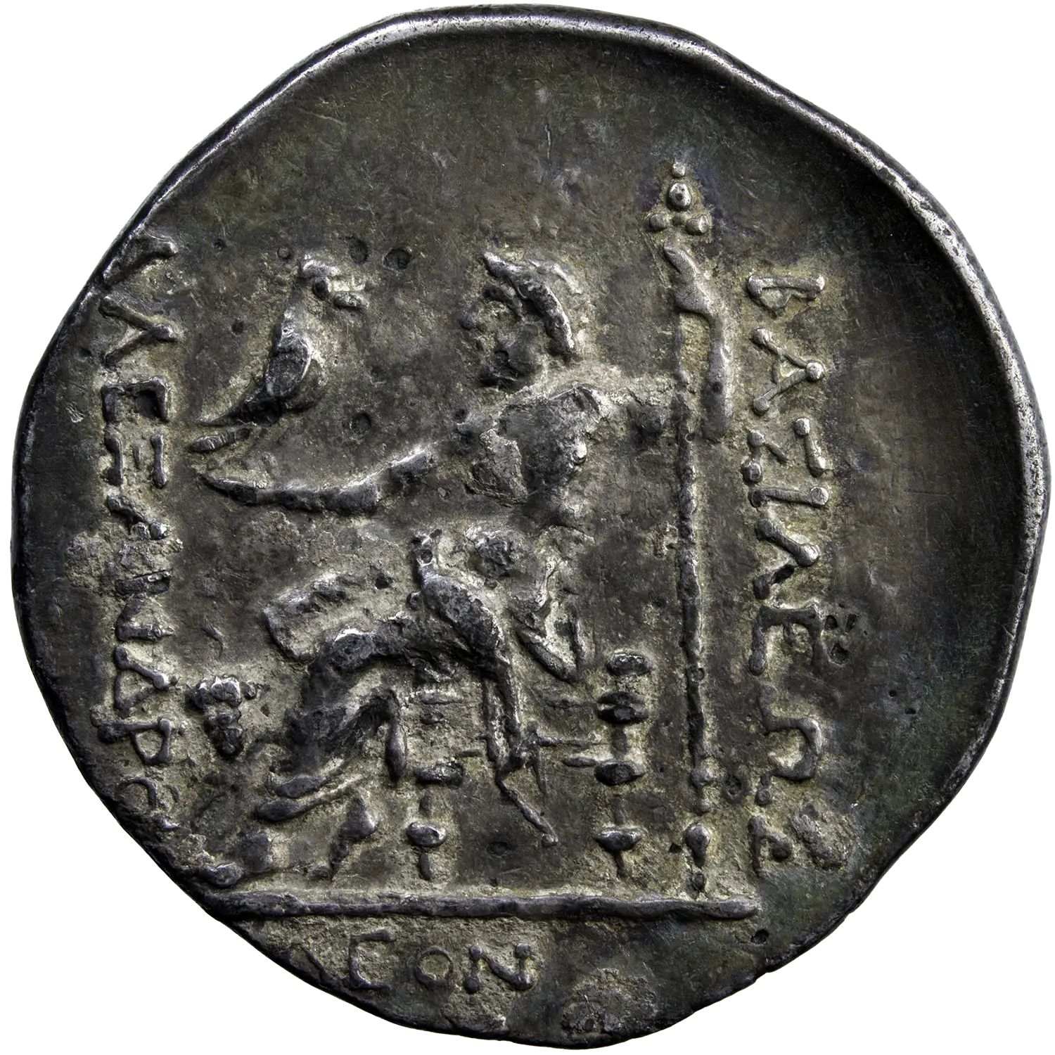 Tetradrachme au type et au nom d’Alexandre frappé pour la ville de Dionysopolis en Skythie sous le Magistrat Leon (légende ΛΕΟΝ à l’exergue au revers). R2 dans le Hoover