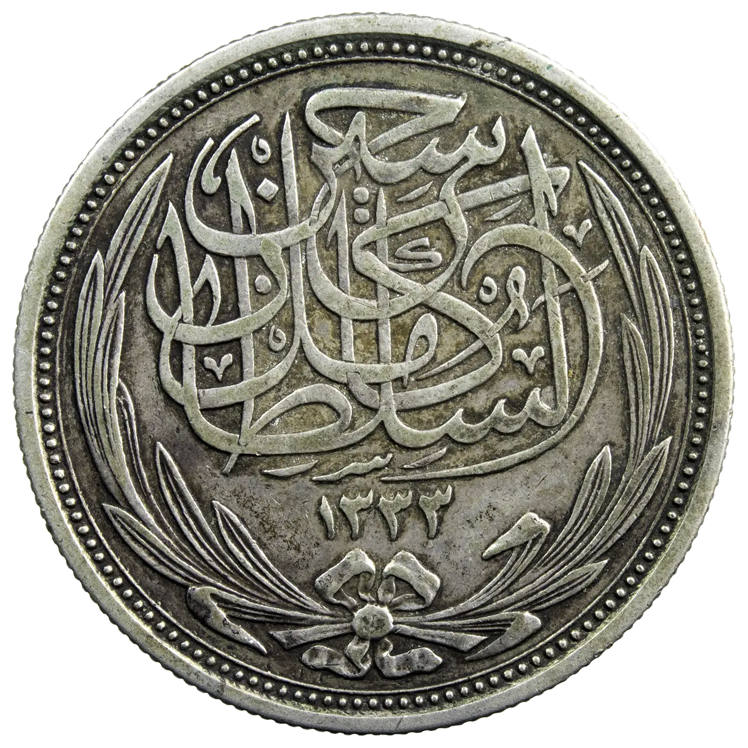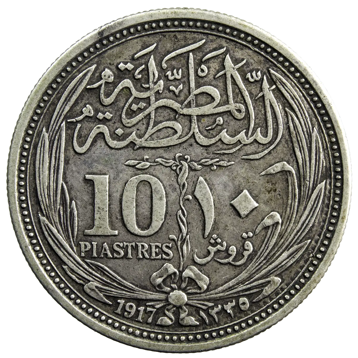 Pièce de 10 piastre en argent frappée en 1917 à Bombay, sous Hussein Kamal sultan d’Egypte (1914-1917)