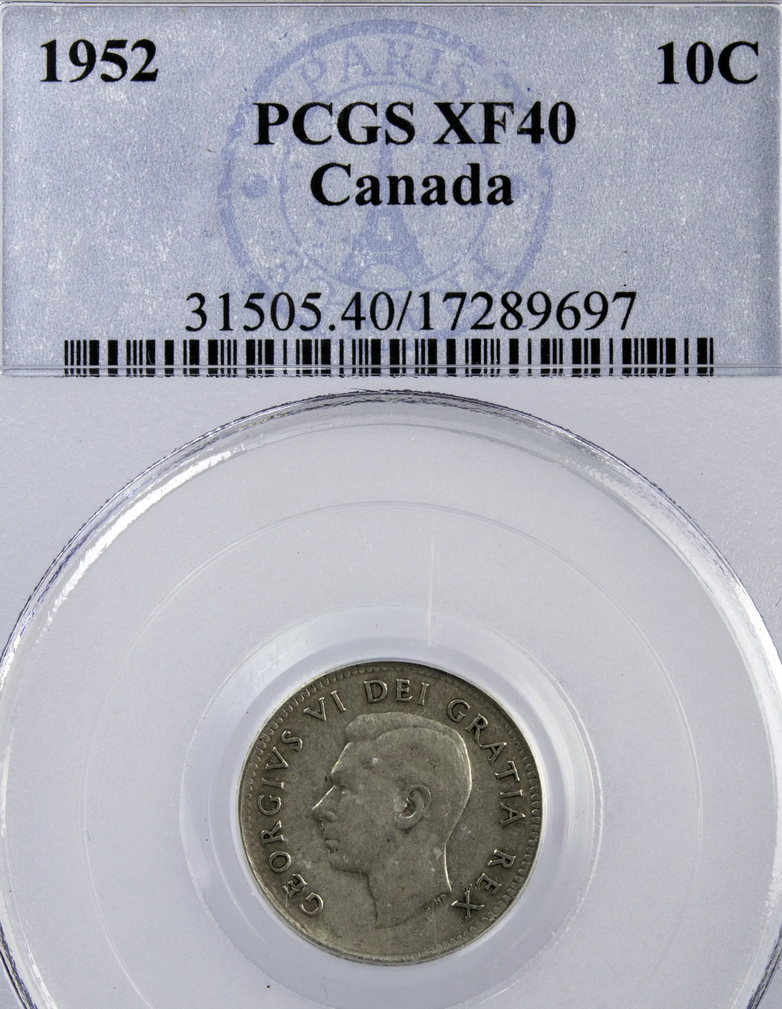Canada George VI 10 cents 1952 PCGS XF40