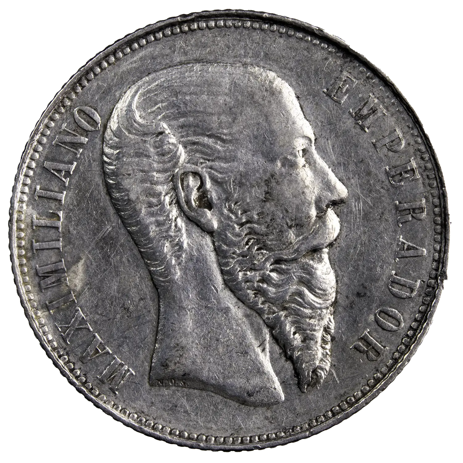 Monnaie en argent de 50 cents frappé sous Maximilien en 1866 à Mexico. Seulement 31000 exemplaires frappés