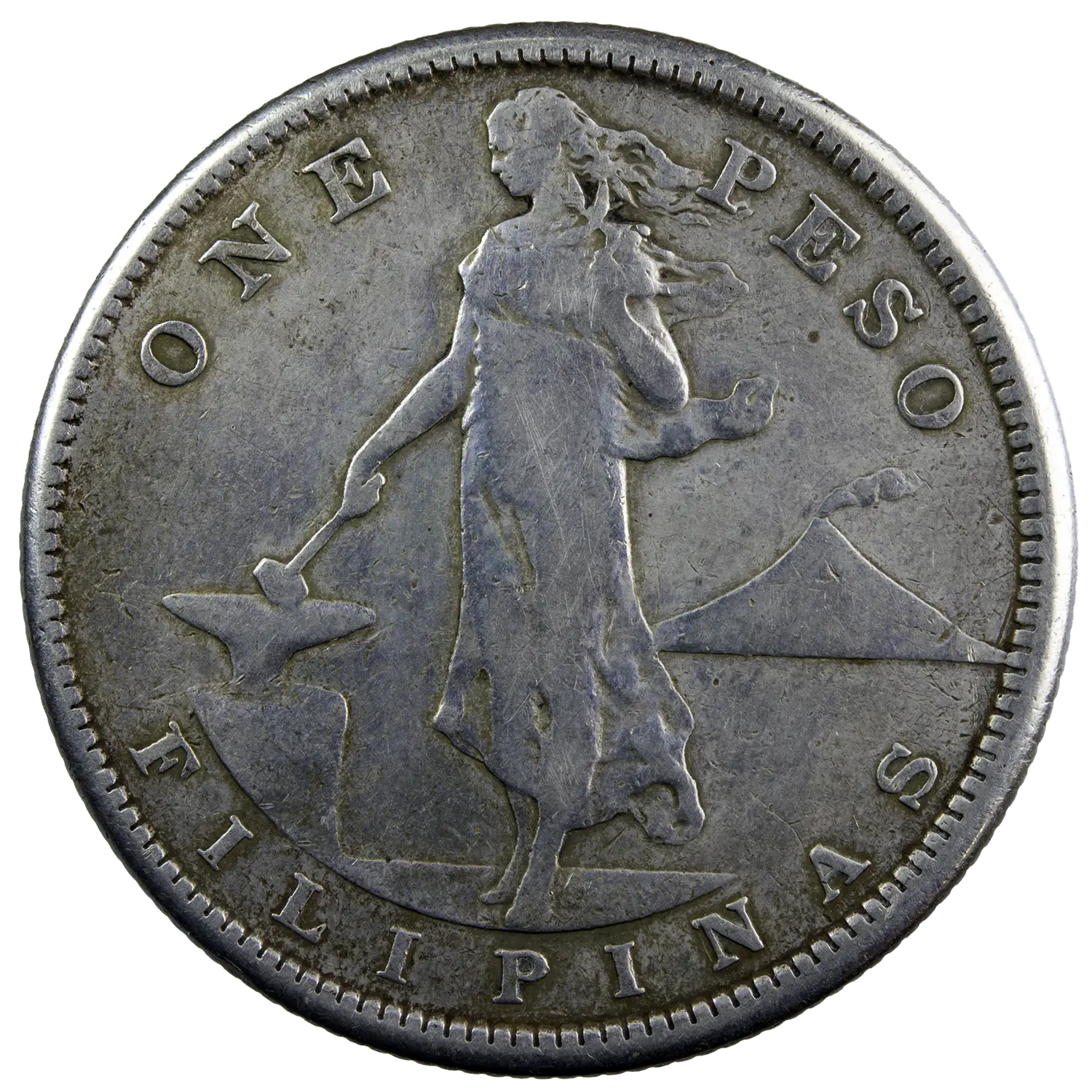 Peso en argent frappé pour les Philippines sous administration américaine. Monnaie frappée en 1907 à San Francisco lettre d’atelier S