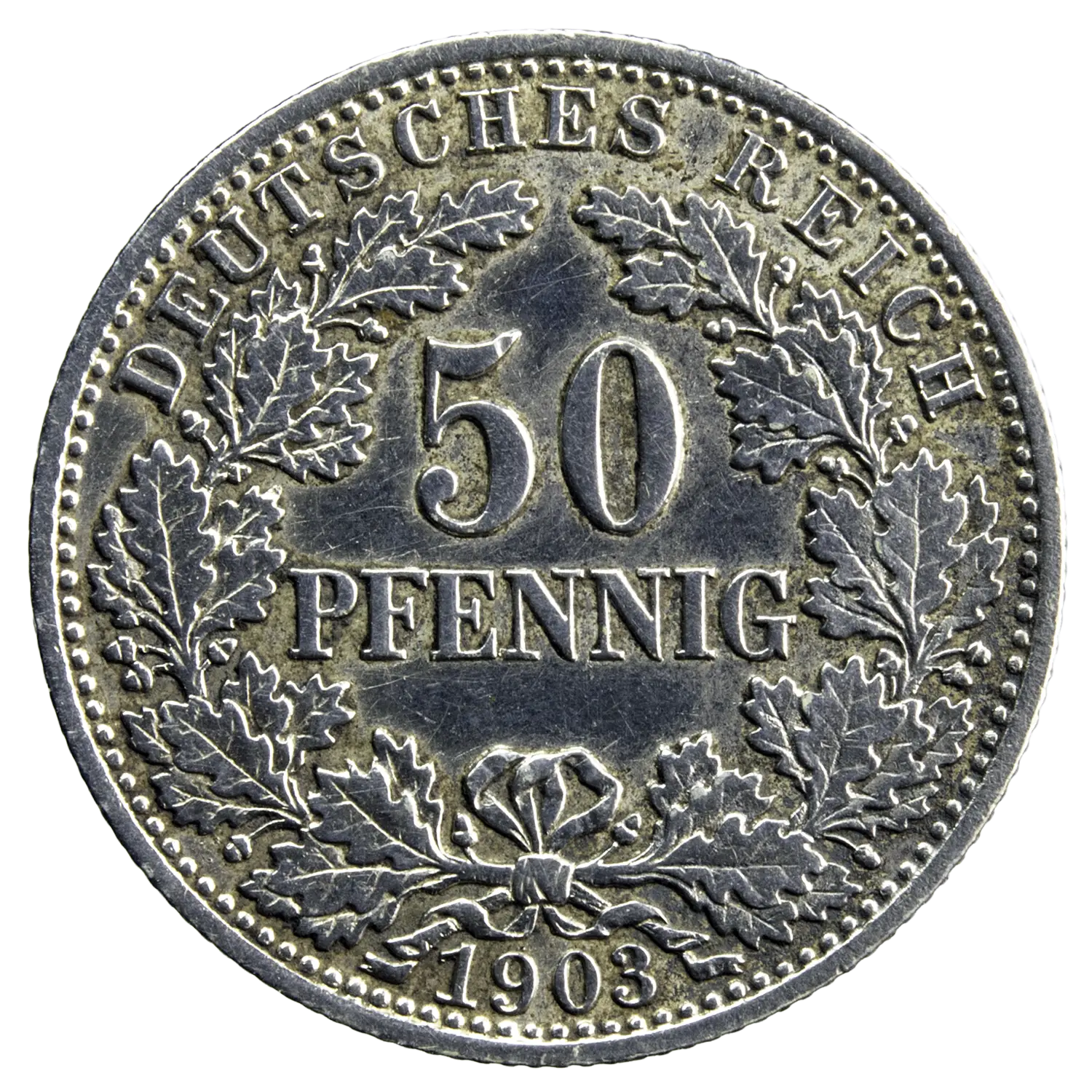 Rare petite pièce en argent de 50 pfennig 1903 frappée à Berlin lettre d’atelier A.  Pièce ayant été nettoyée avec un brillant artificiel