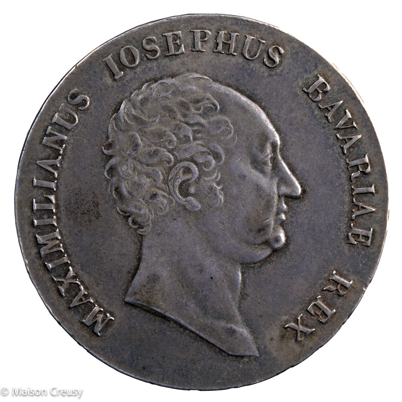 Thaler en argent de Maximilien IV grand électeur de Bavière connu sous le nom de Maximilien Ier roi de Bavière. Monnaie frappée en 1816 à Munich