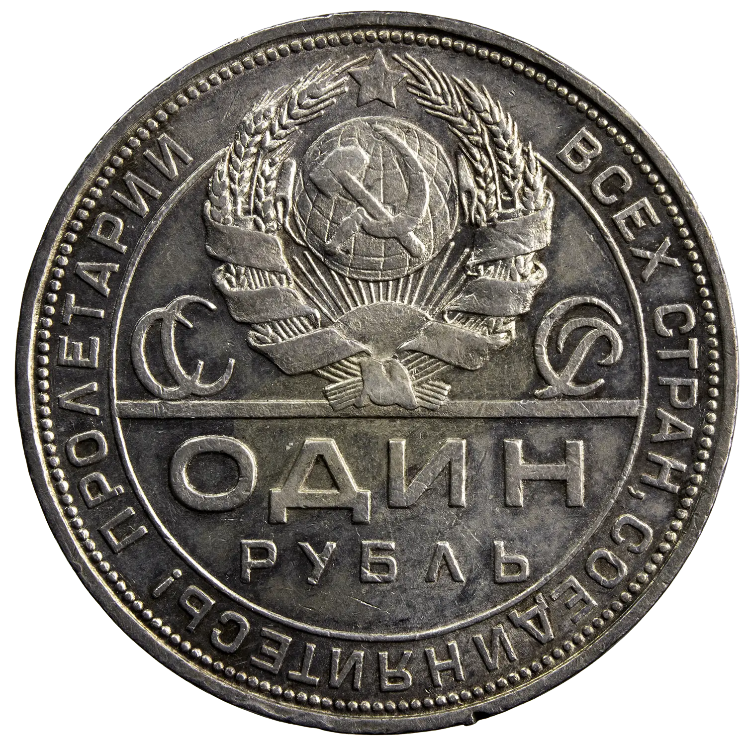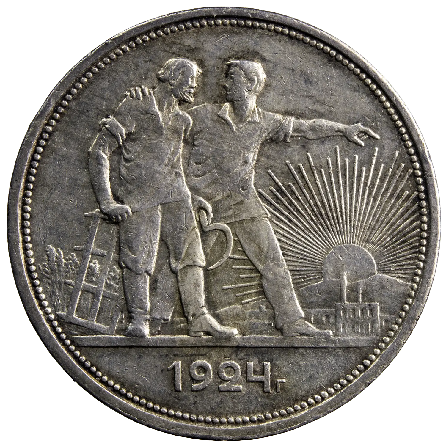 Pièce d’un rouble en argent frappée pour l’URSS en 1924 à Leningrad. De jolie qualité pour le type.