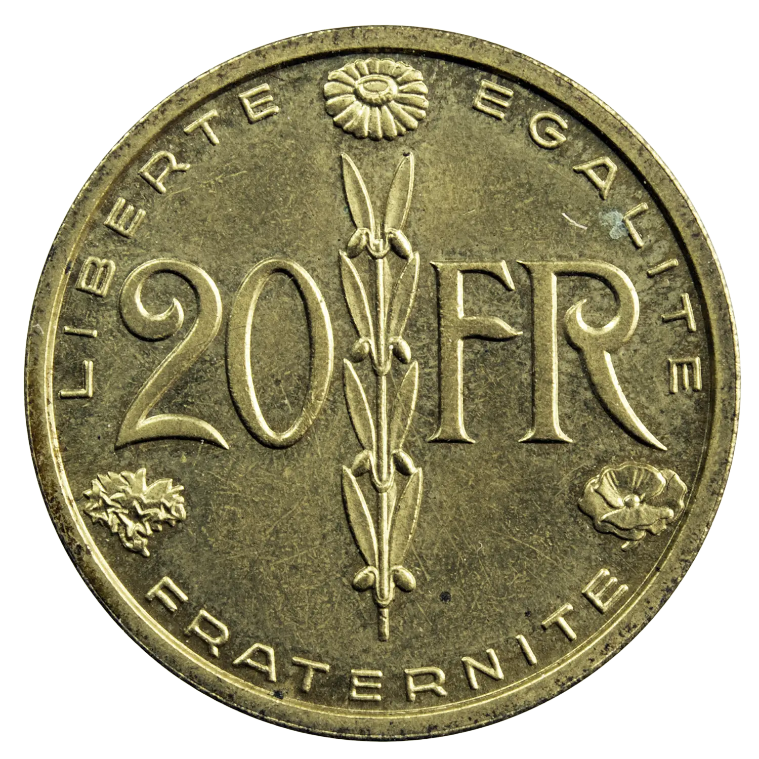 Essai du concours de 20 francs par Paul Simon, pré-série sans le mot essai tirer à seulement 25 exemplaires en cupro-aluminium.