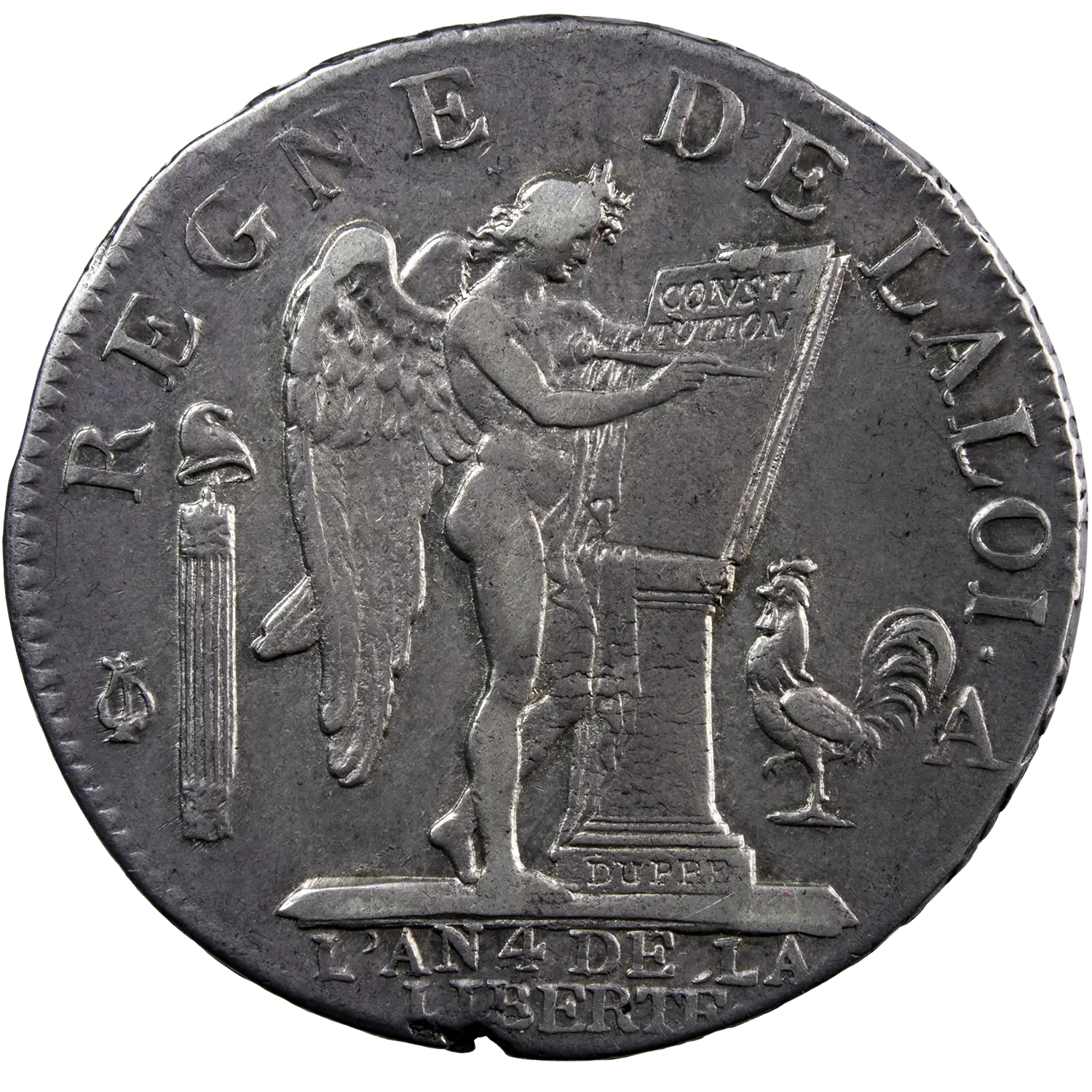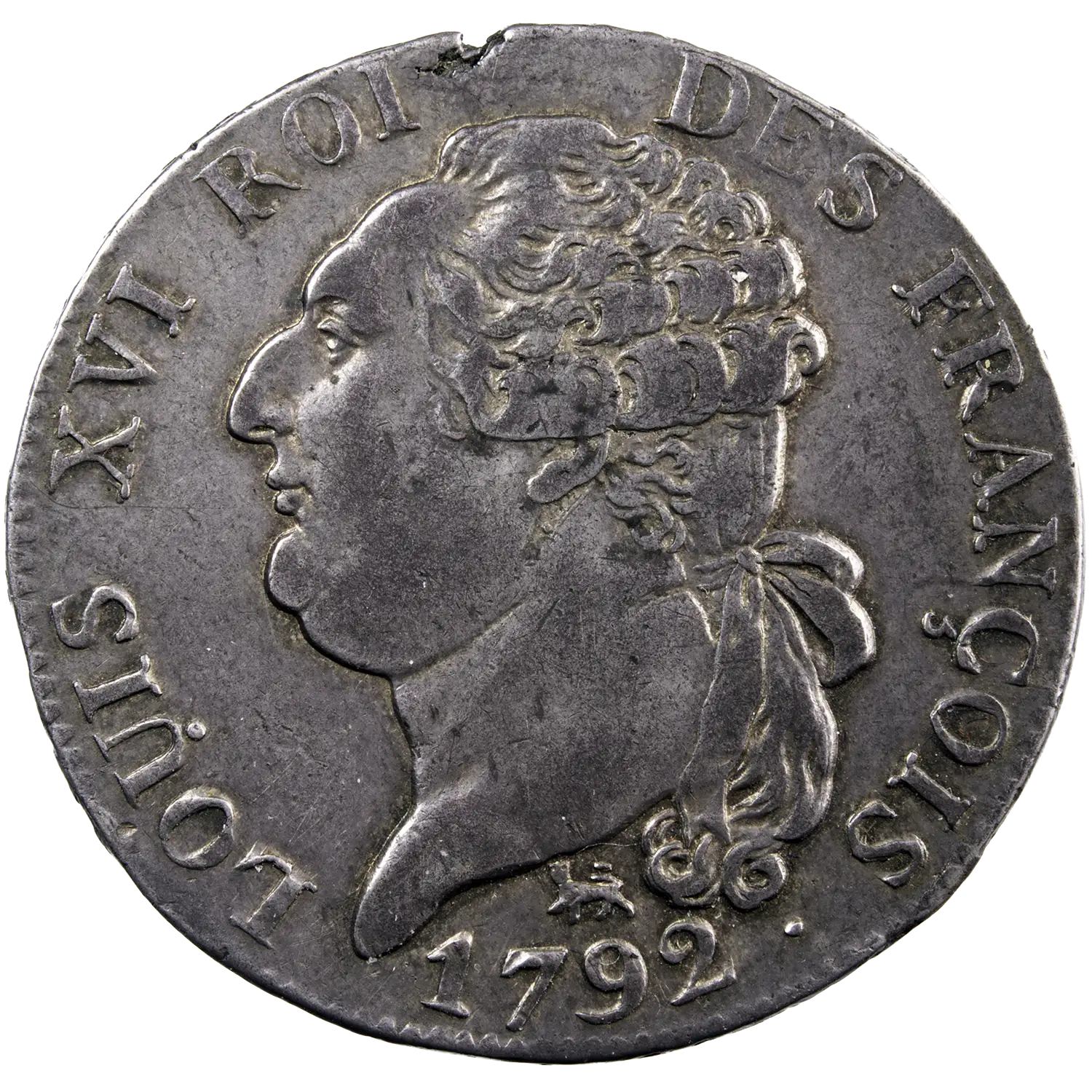 Demi écu de 3 livres frappé durant la Constitution en 1792 à Paris. Tête de Louis XVI à l’avers et genie écrivant les tablettes de la loi au revers