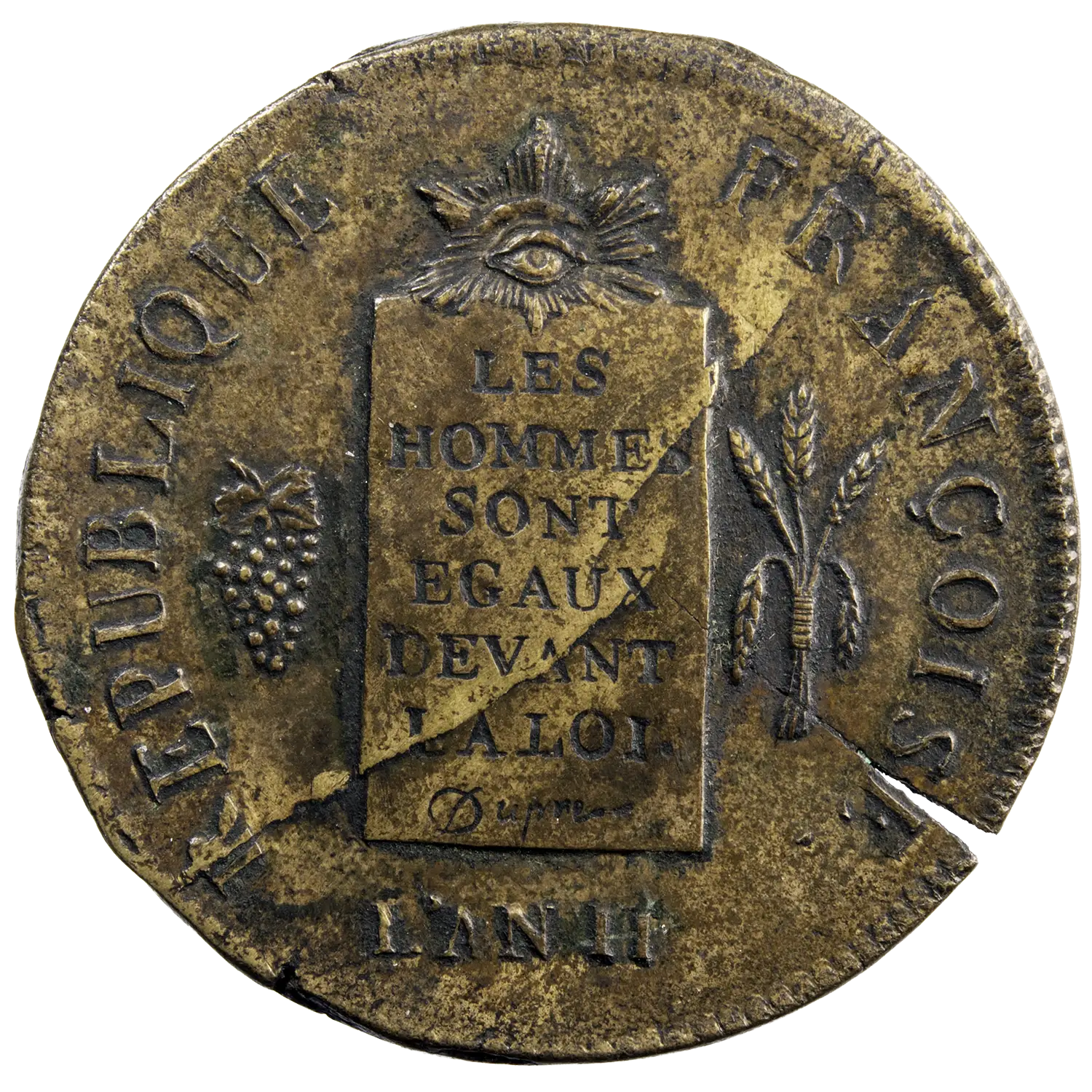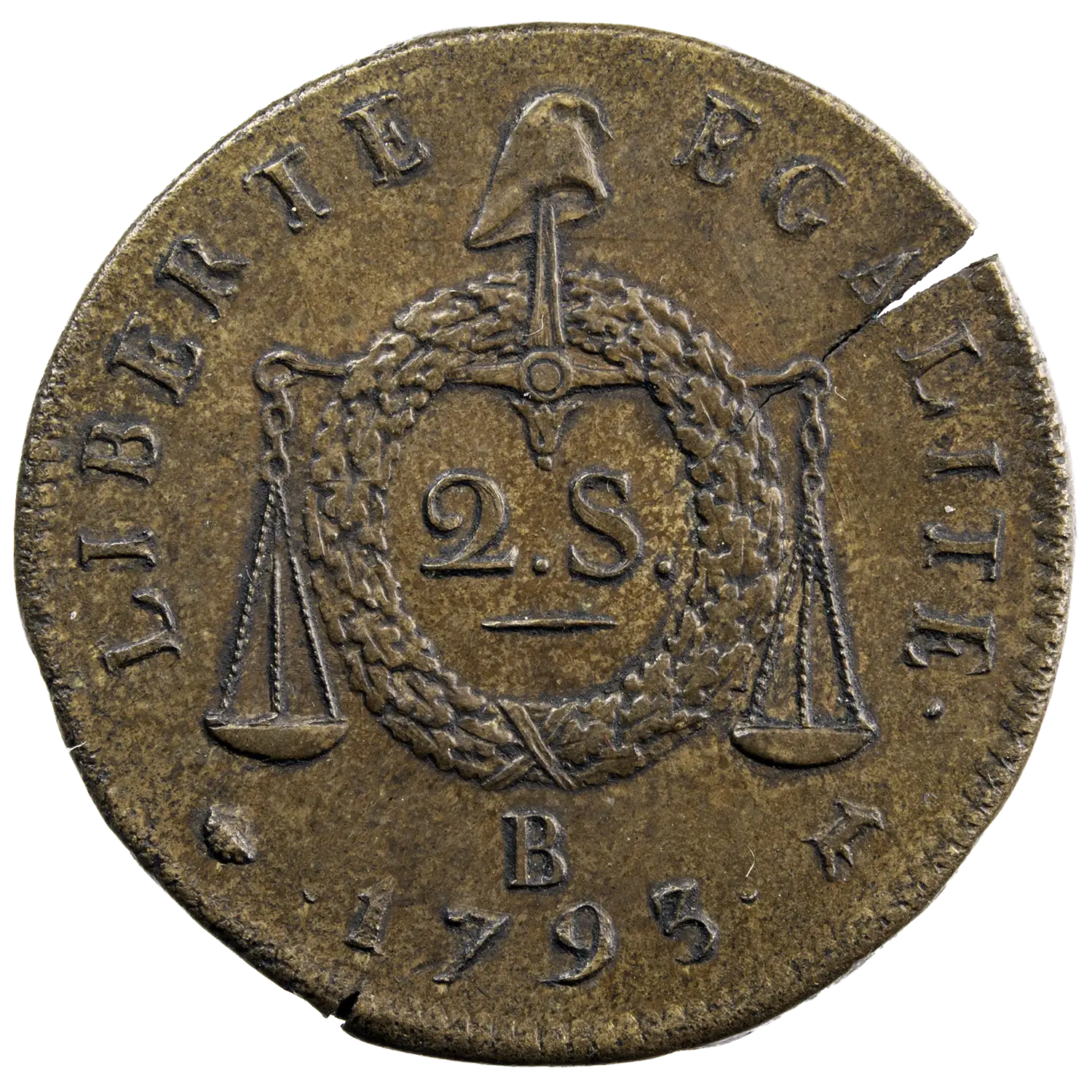Pièce de 2 sols à la balance de la convention, refrappe du XIXème siècle identifiable à la forme de l’agneau pascal à droite de la date.