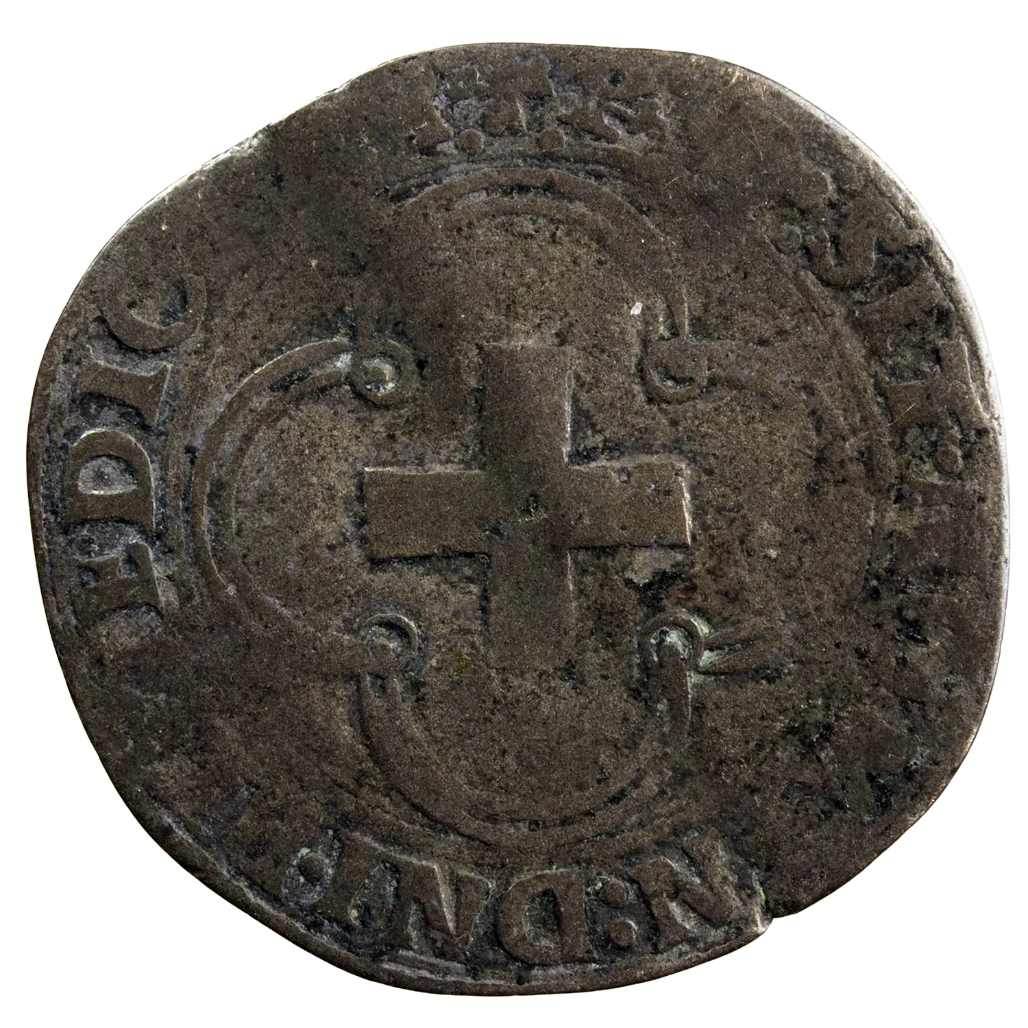 Très rare douzain à la croisette de Francois I frappé à Bayonne, sous le maitre de monnaie Pierre Larue différent P croisé d’un trèfle, en 1544-1545.
