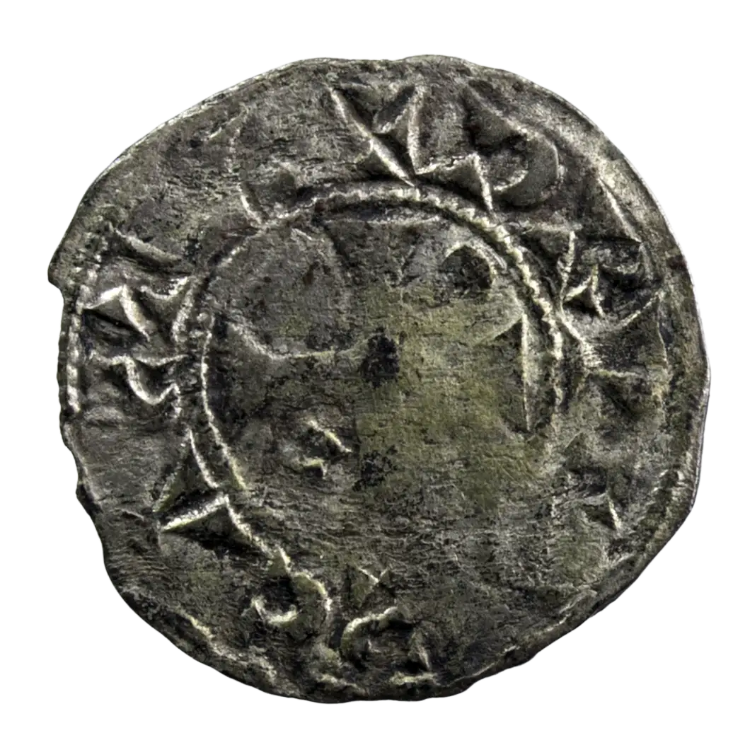 Obole de Louis VI dit le gros roi de France de 1108 à 1137. Monnaie en billon frappée à Dreux. Les S des légendes sont rétrogrades
