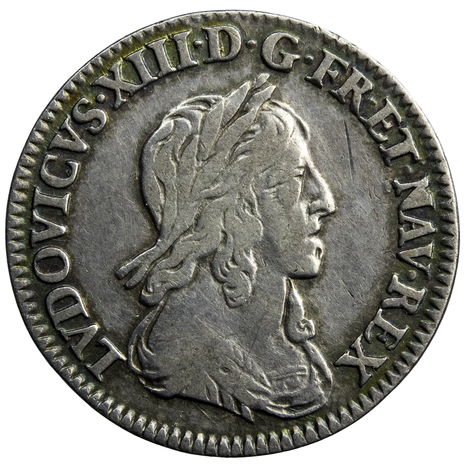 Douzième d’écu d’argent de Louis XIII roi de France, monnaie frappée en 1643 à Paris. 3 sur 2