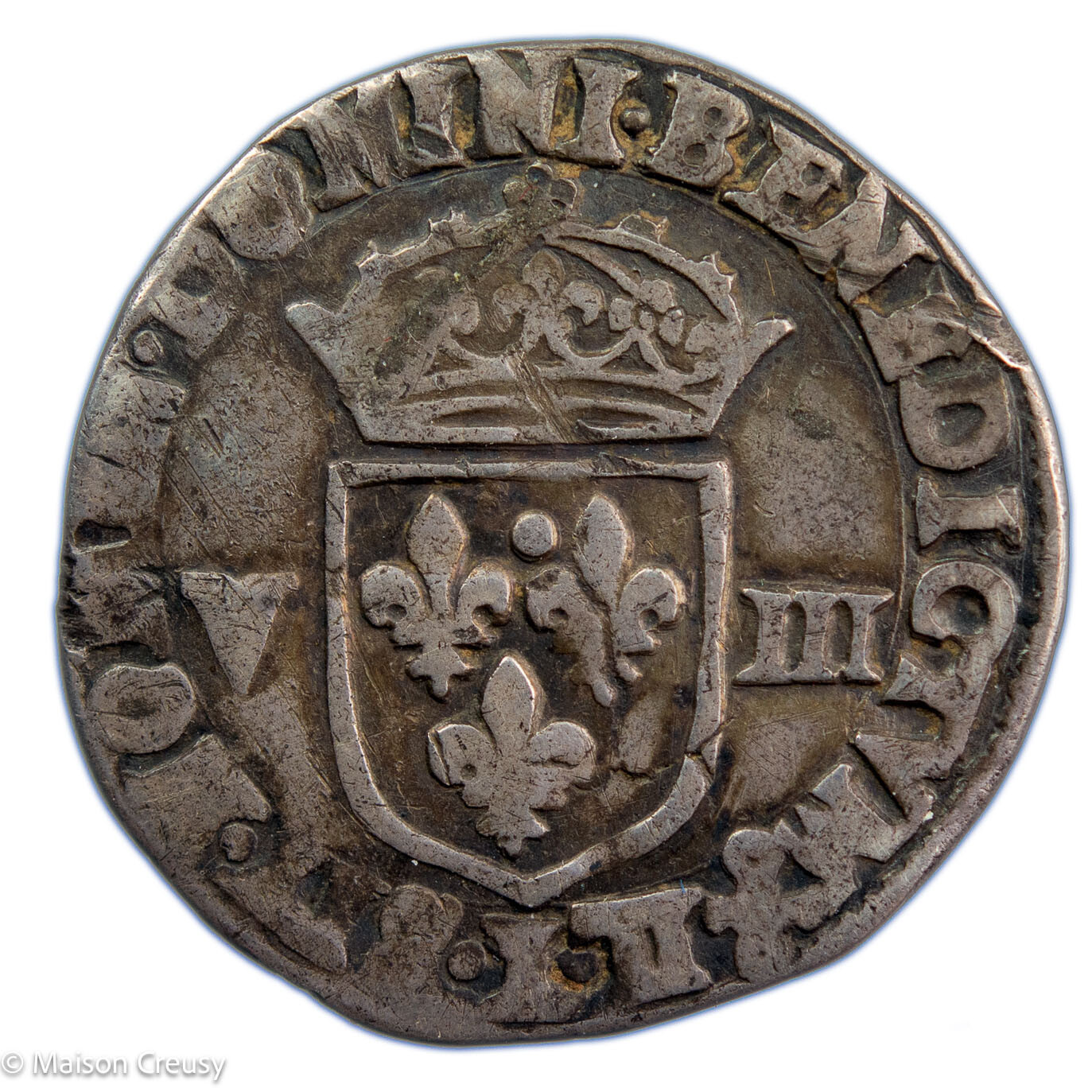 Rare Huitième (1/8) d’écu de Louis XIII frappé au marteau en 1614 à Bayonne (L). La titulature est du coté de la croix fleuronnée