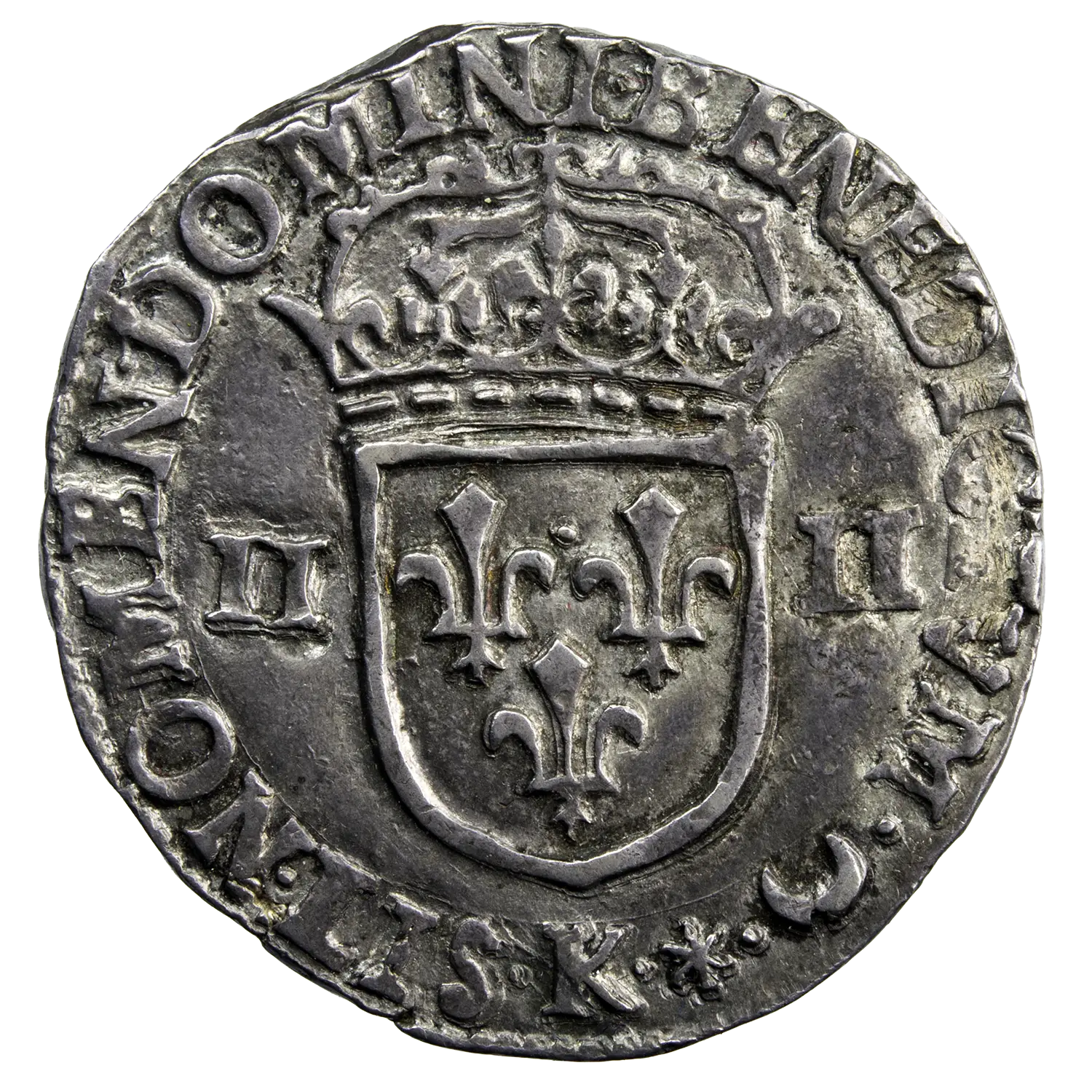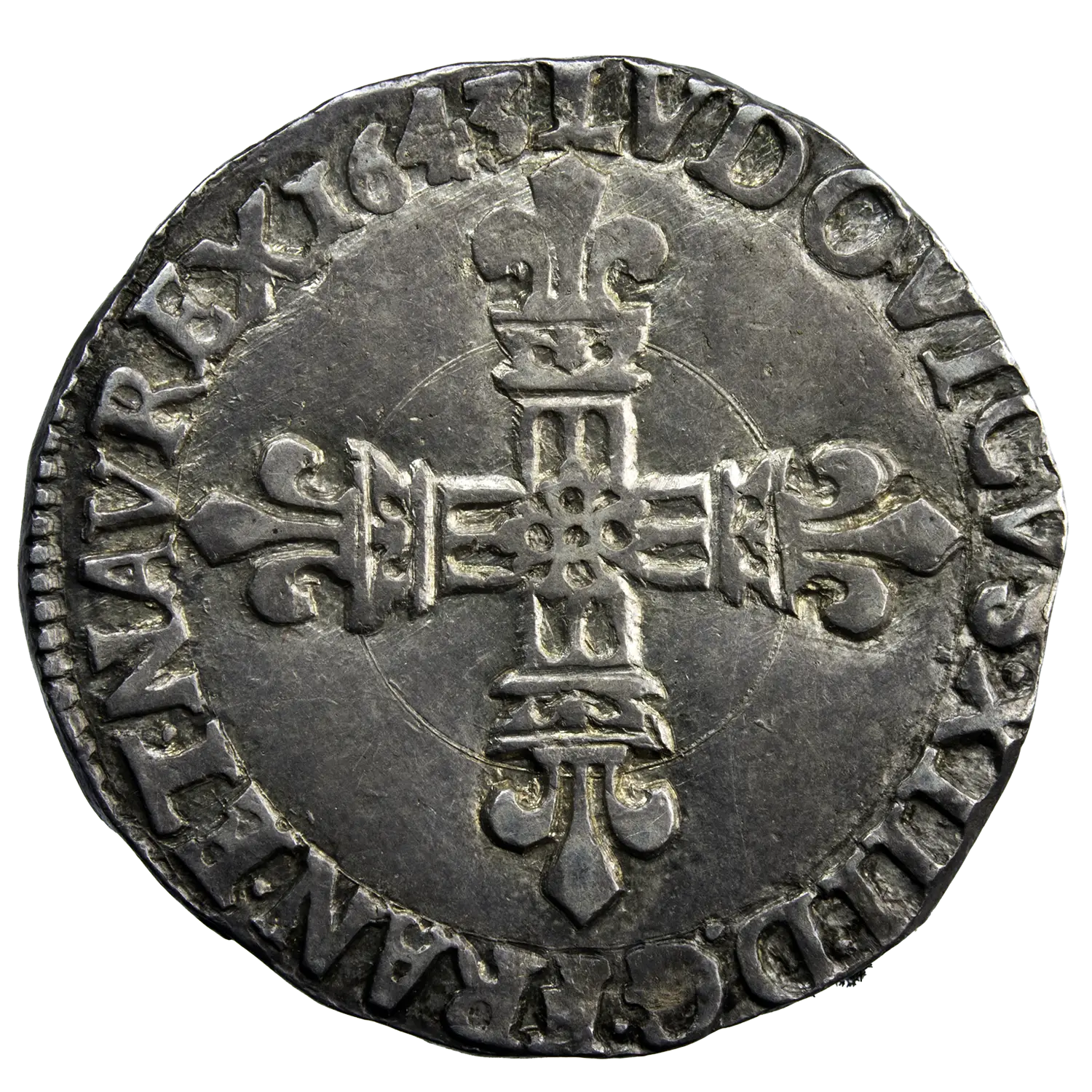 Quart d’écu frappé au marteau sous Louis XIII en 1643 à Bordeaux lettre d’atelier K. Seulement 76337 exemplaires frappés