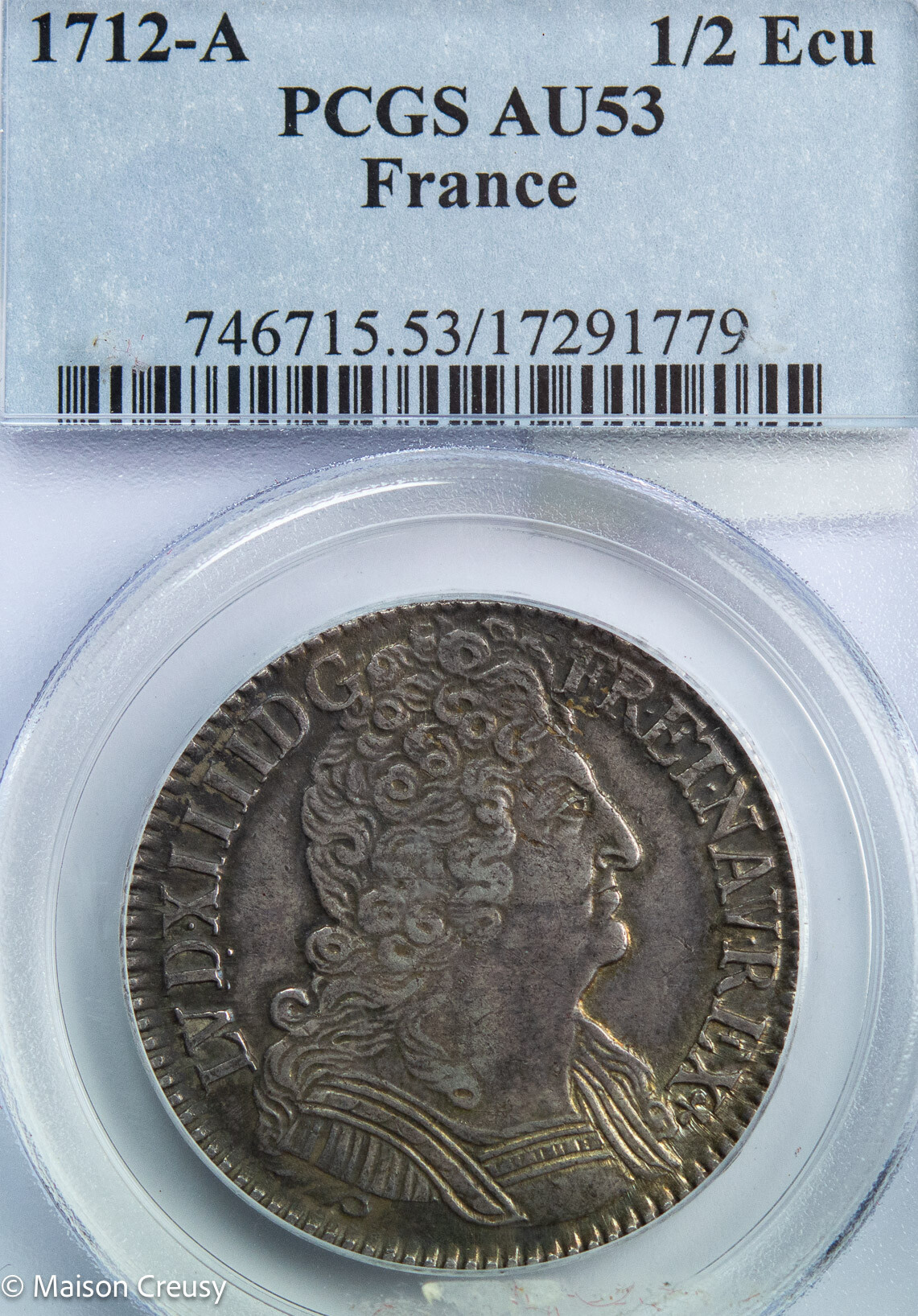 Louis XIV 1/2 écu aux 3 couronnes 1712 Paris PCGS AU53