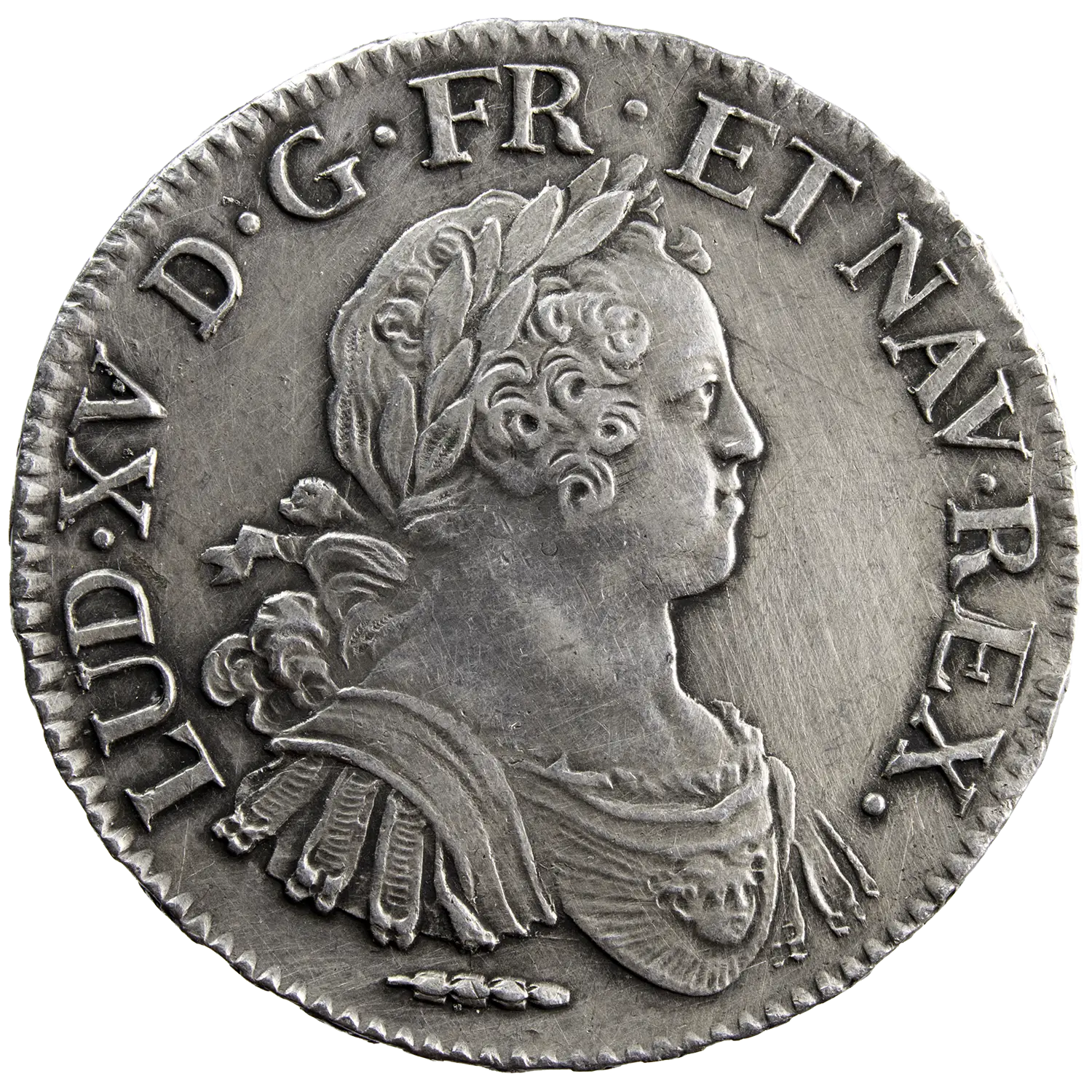 Ecu en argent de Louis XV roi de France, monnaie dites aux 8L frappée en 1725 à Amiens lettre d’atelier X. Monnaie nettoyée sinon TTB+