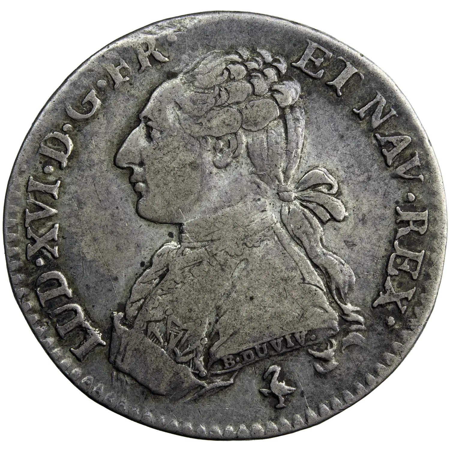 Pièce d’1/5 d’écu aux lauriers de Louis XVI roi de France, monnaie frappée en 1785 à Paris lettre d’atelier A, R1 dans le clairand