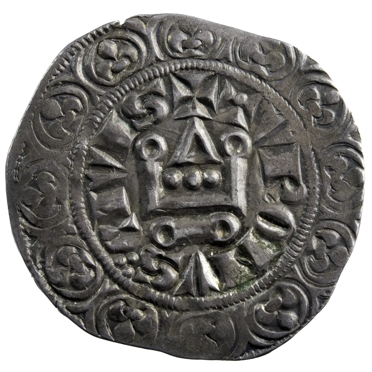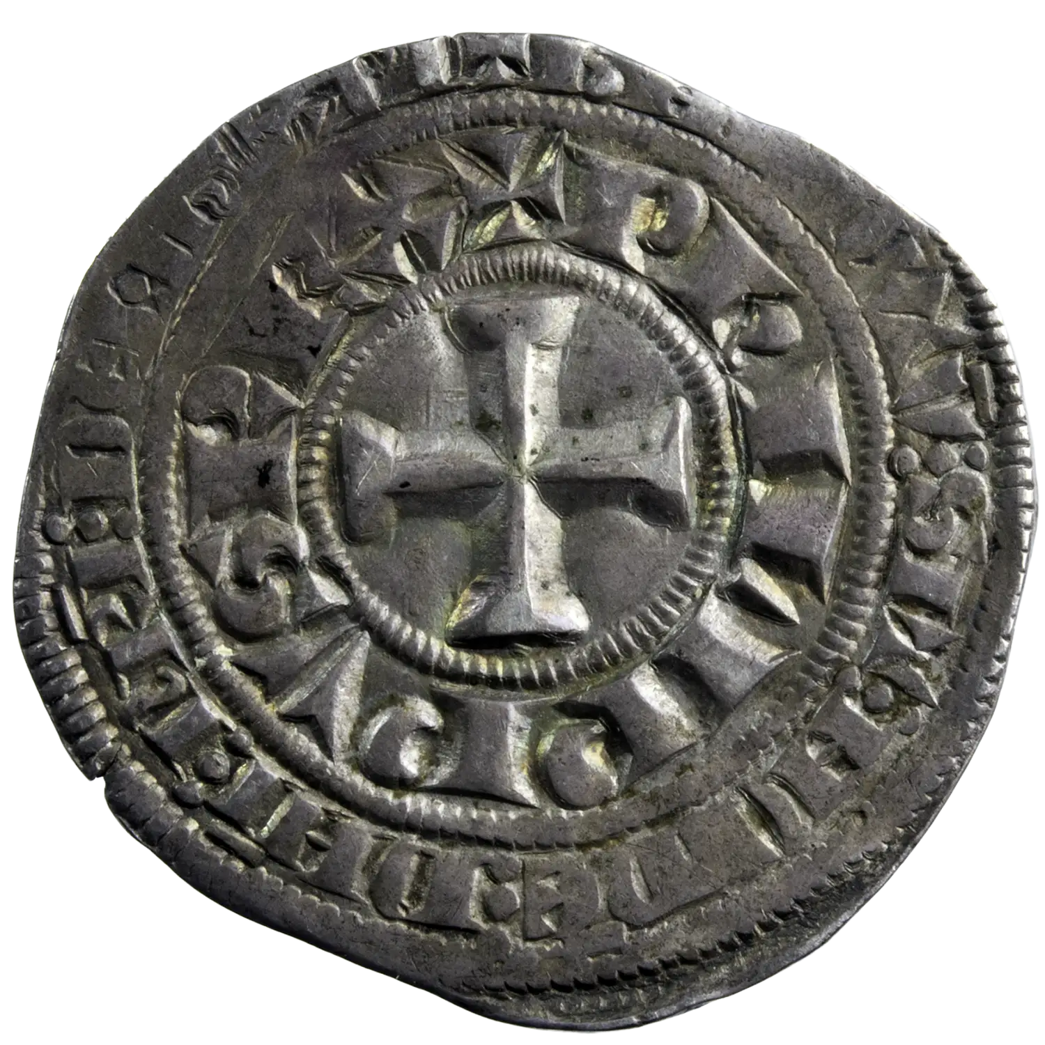 Interesting variety of the gros tournois of Philippe IV le Bel, long “O” type, struck between 1290 and 1295, but with three pellets after TVRONVS.