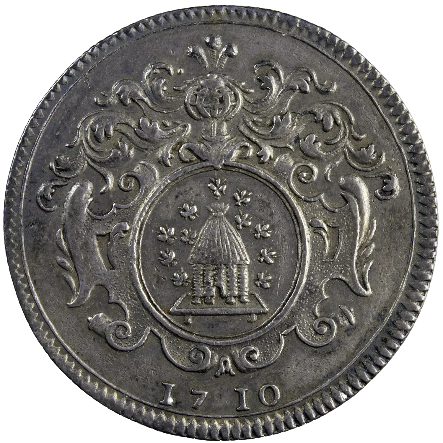 Jeton en argent frappé pour Claude Mielle procureur du parlement de Bourgogne, Arme de Claude Miele ruche entourée d’un essaim à l’avers et arme de Bourgogne au revers