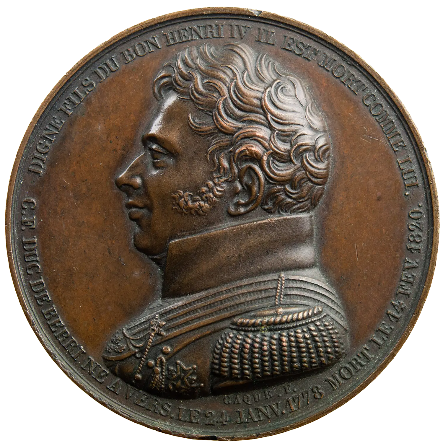 Coup sur les listels sinon Superbe. Charles Ferdinand d’Artois duc du Berry. Gravé par Armand Auguste Caqué