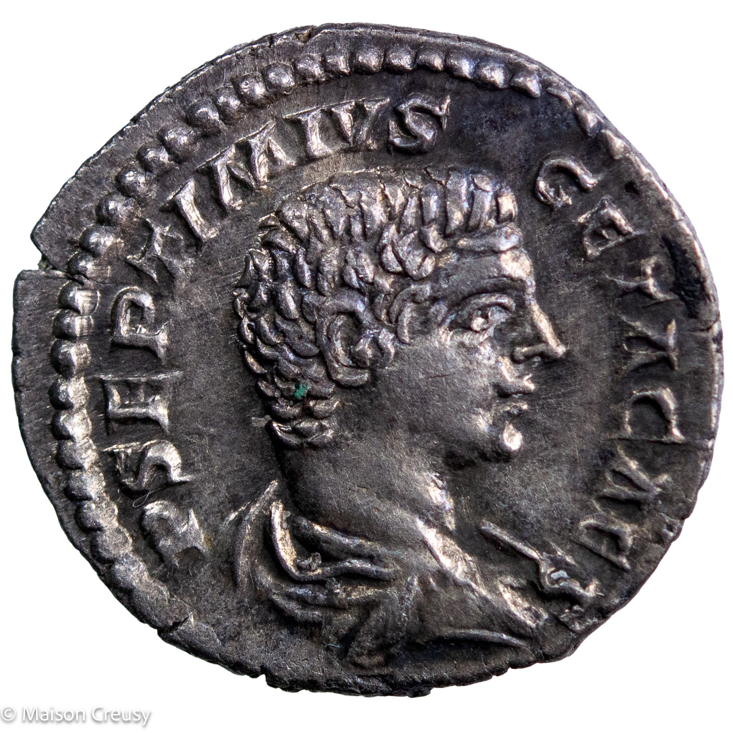 Silver denarius of Geta as Caesar struck under Septimius Severus in Rome in 206. Bust of Geta right on obverse and Providentia on reverse