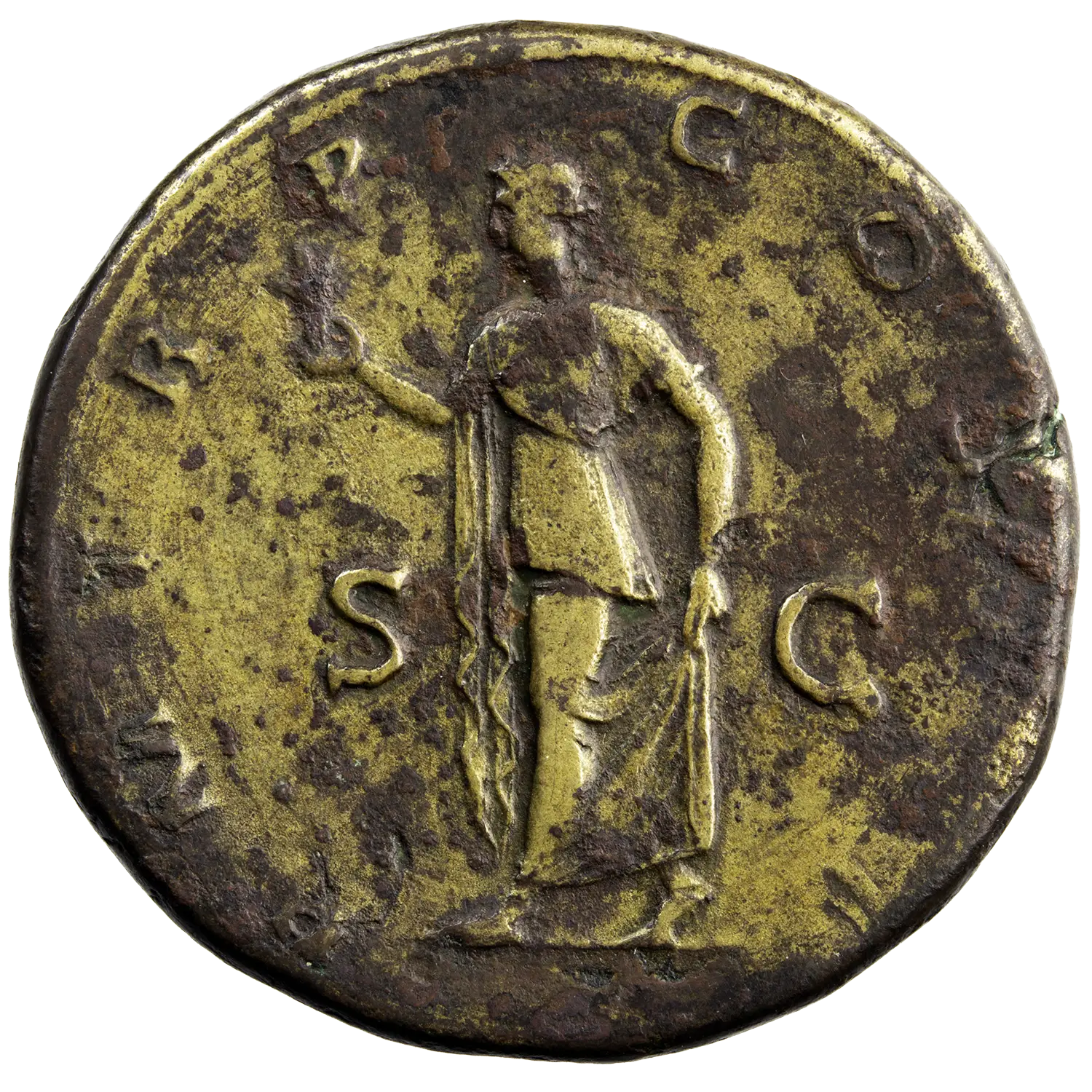 Very fine portrait of Emperor Hadrian on this bronze sestertius struck in Rome around AD 119–123. This coin is classified as R2 in the RIC.