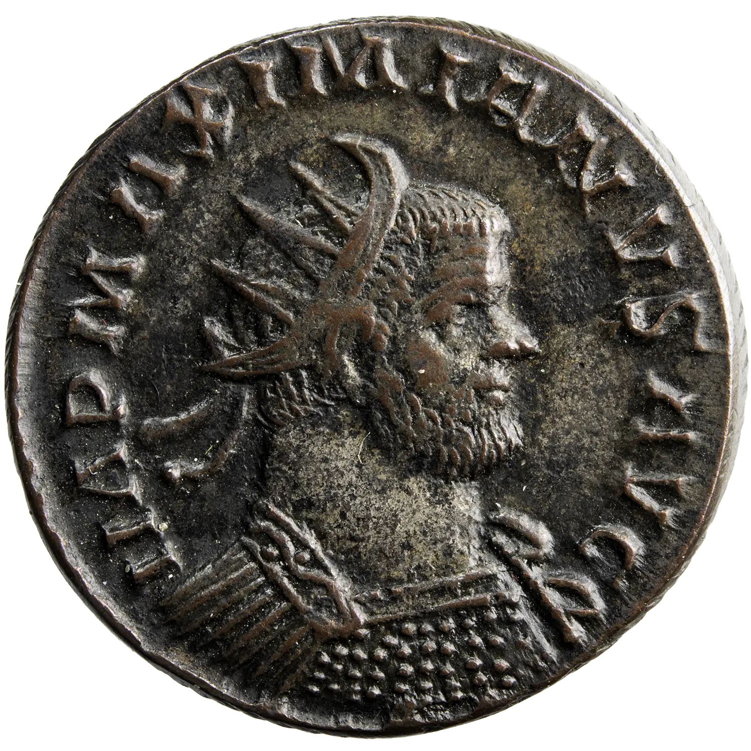Billon antoninianus struck under the Roman emperor Maximian, minted at Lugdunum (modern-day Lyon) during the 8th emission in AD 292. A well-preserved example from the early Tetrarchic period, reflecting the reforms and iconography of the late Roman Empire.