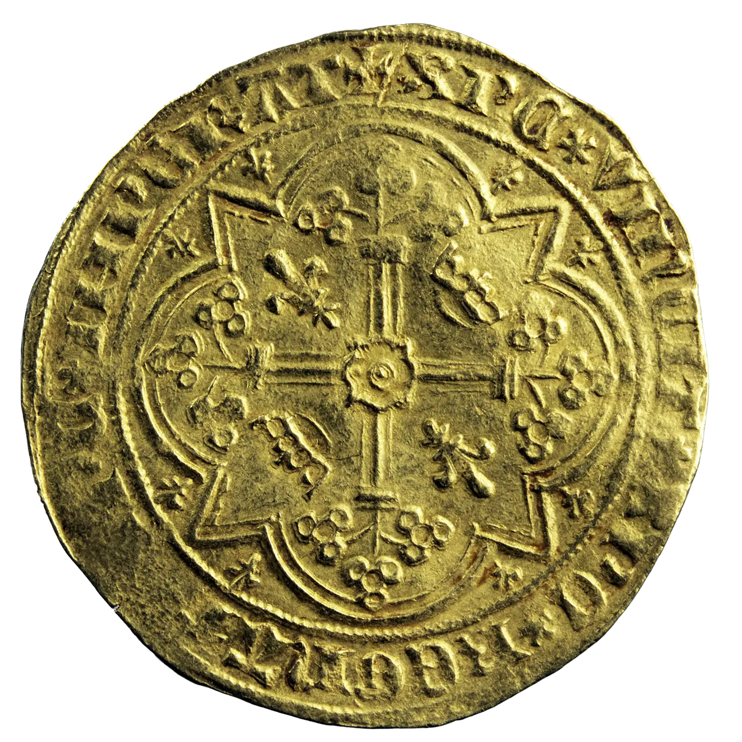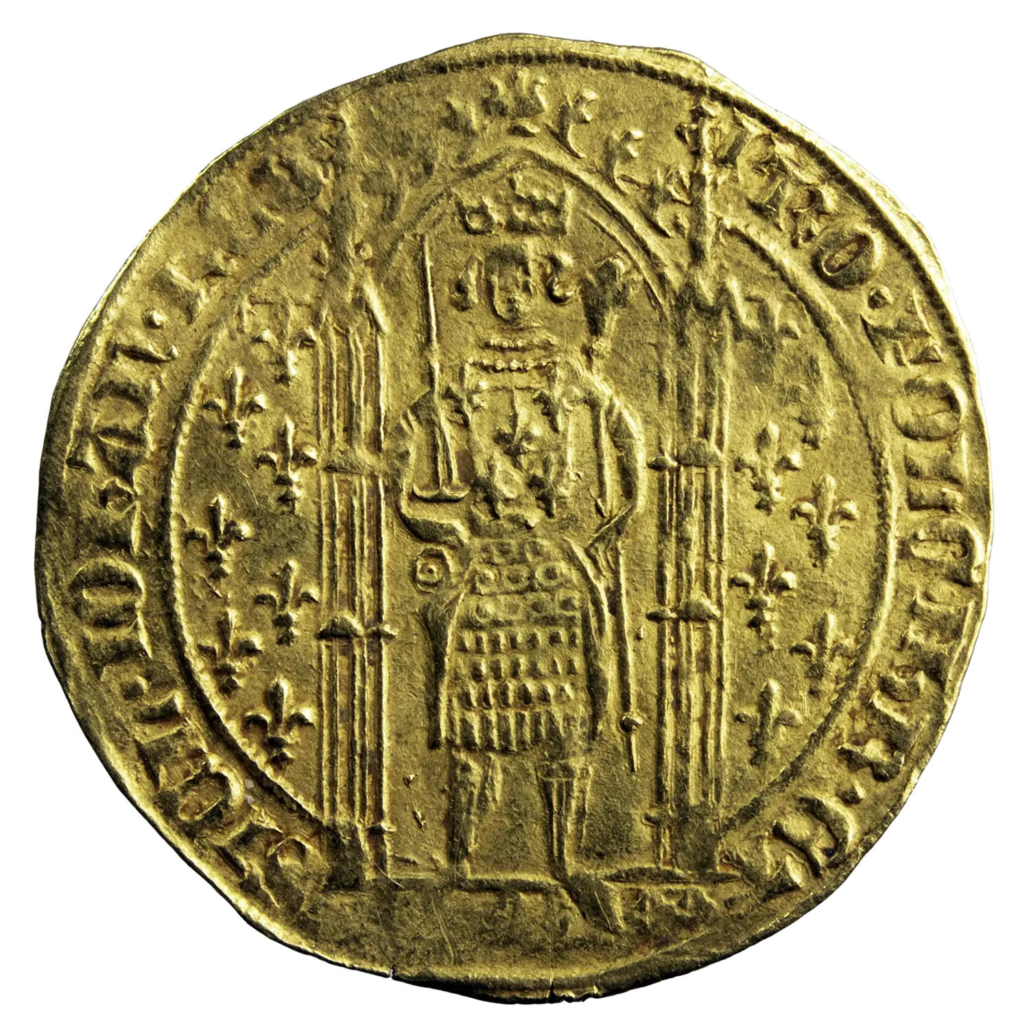 Feudal coinage from Provence, minted under Jeanne de Naples (1362-1382) in Avignon around 1368-1374. Gold franc a pied in imitation of the franc a pied of Charles V king of France.
