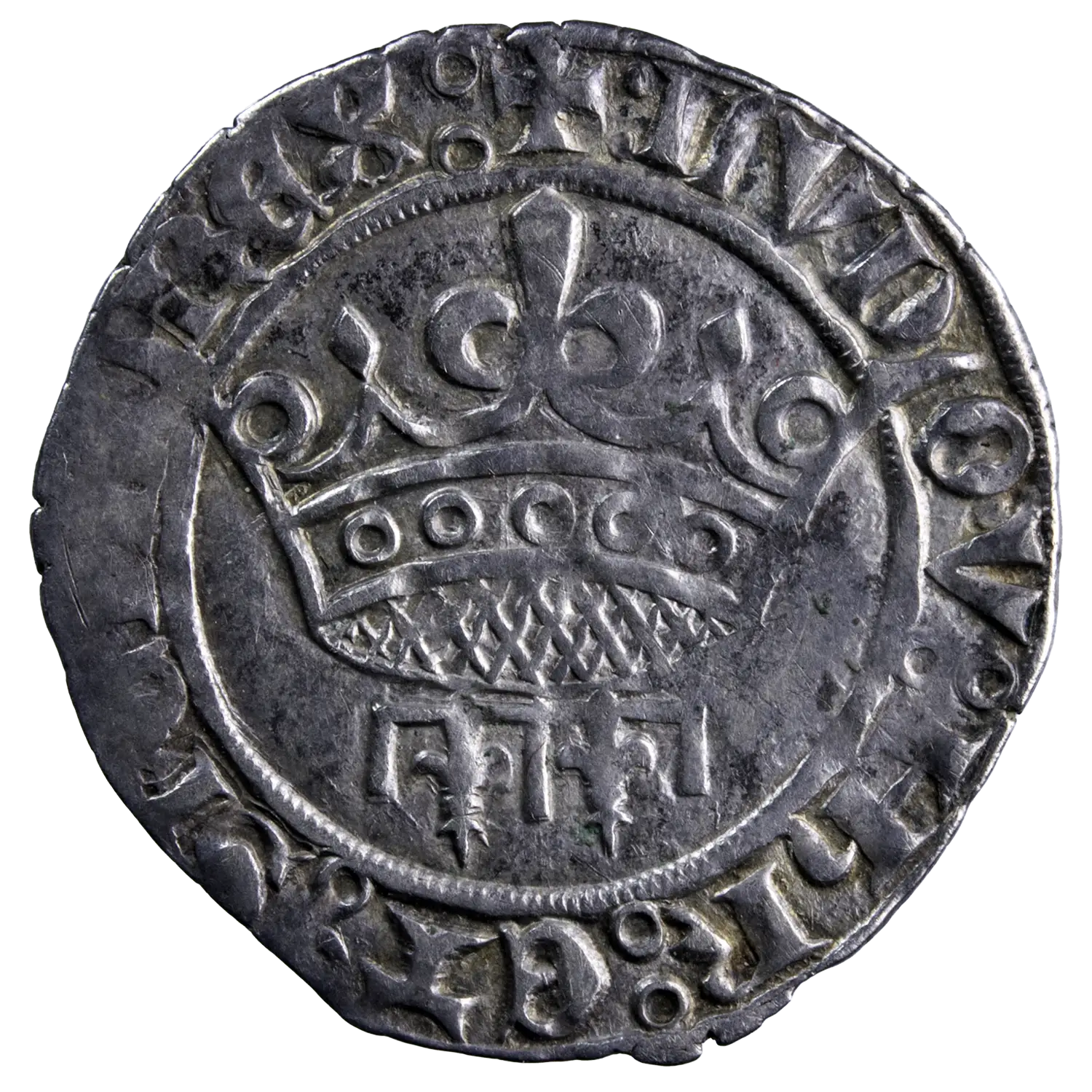 French feudal coin minted for Provence under Louis III or IV of Anjou. Gros or Sol coronat struck in Tarascon around 1417-1434.