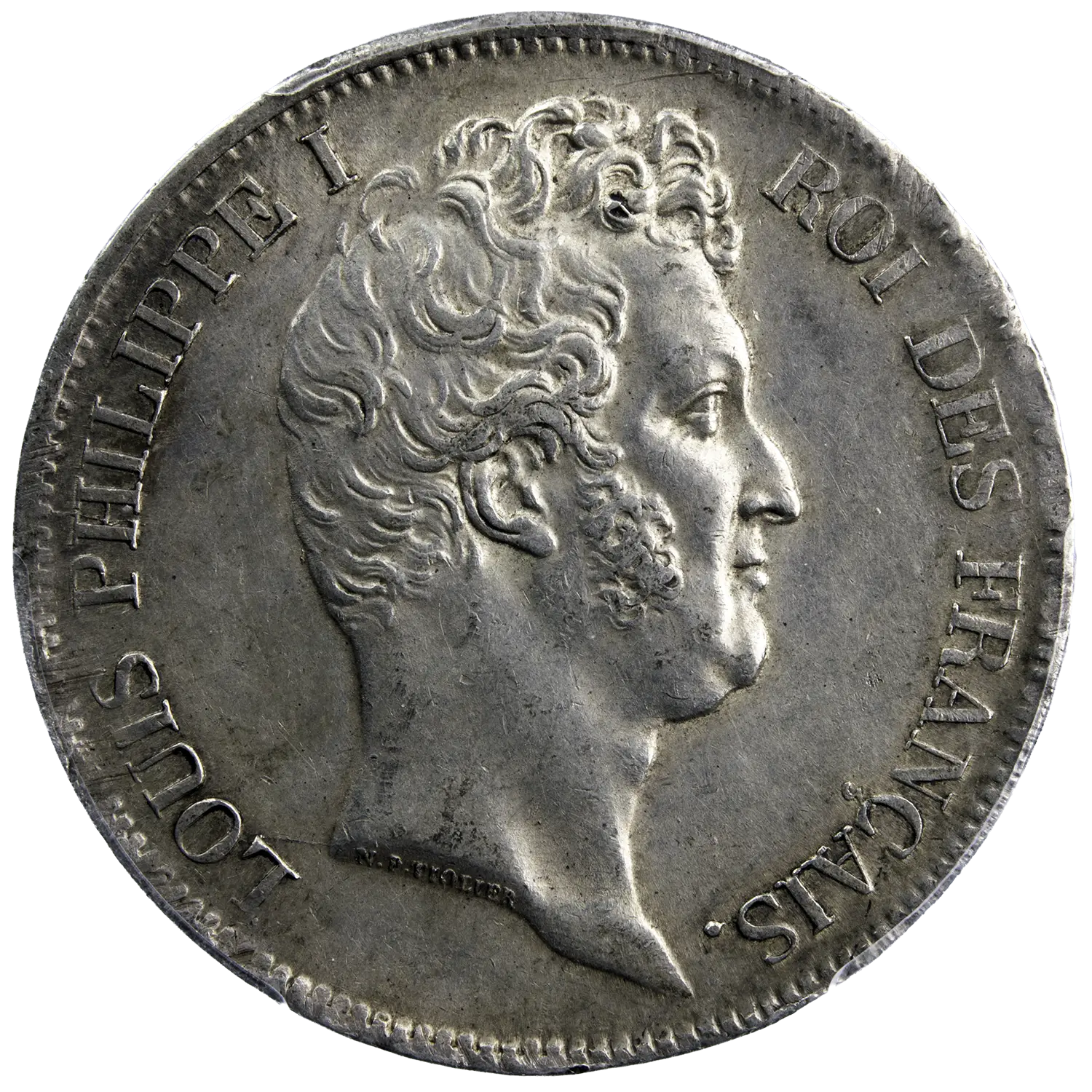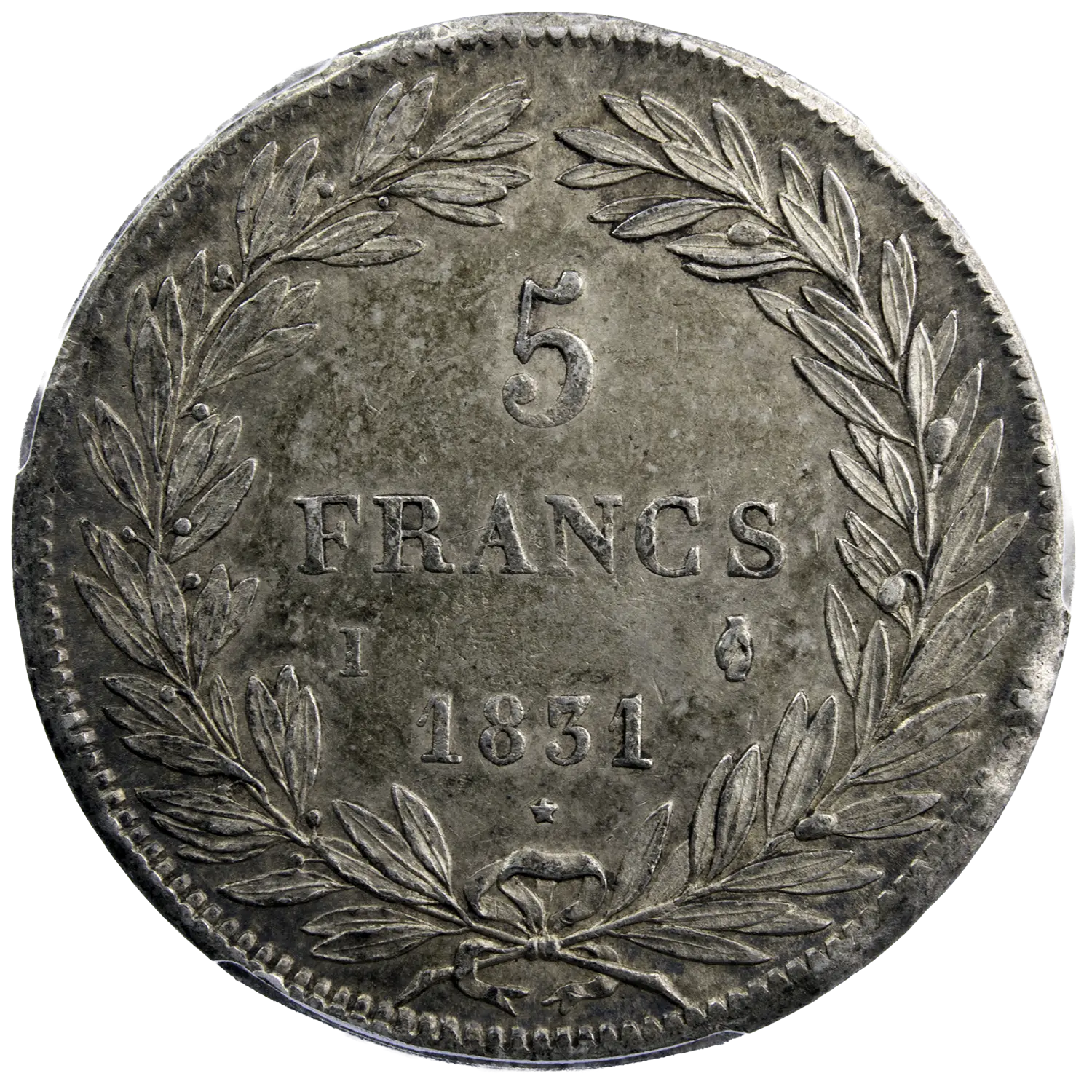 Silver 5-franc coin of Louis-Philippe, struck in 1831 in Limoges with mintmark ‘I’. Certified AU58 by PCGS, which is the second-highest grade