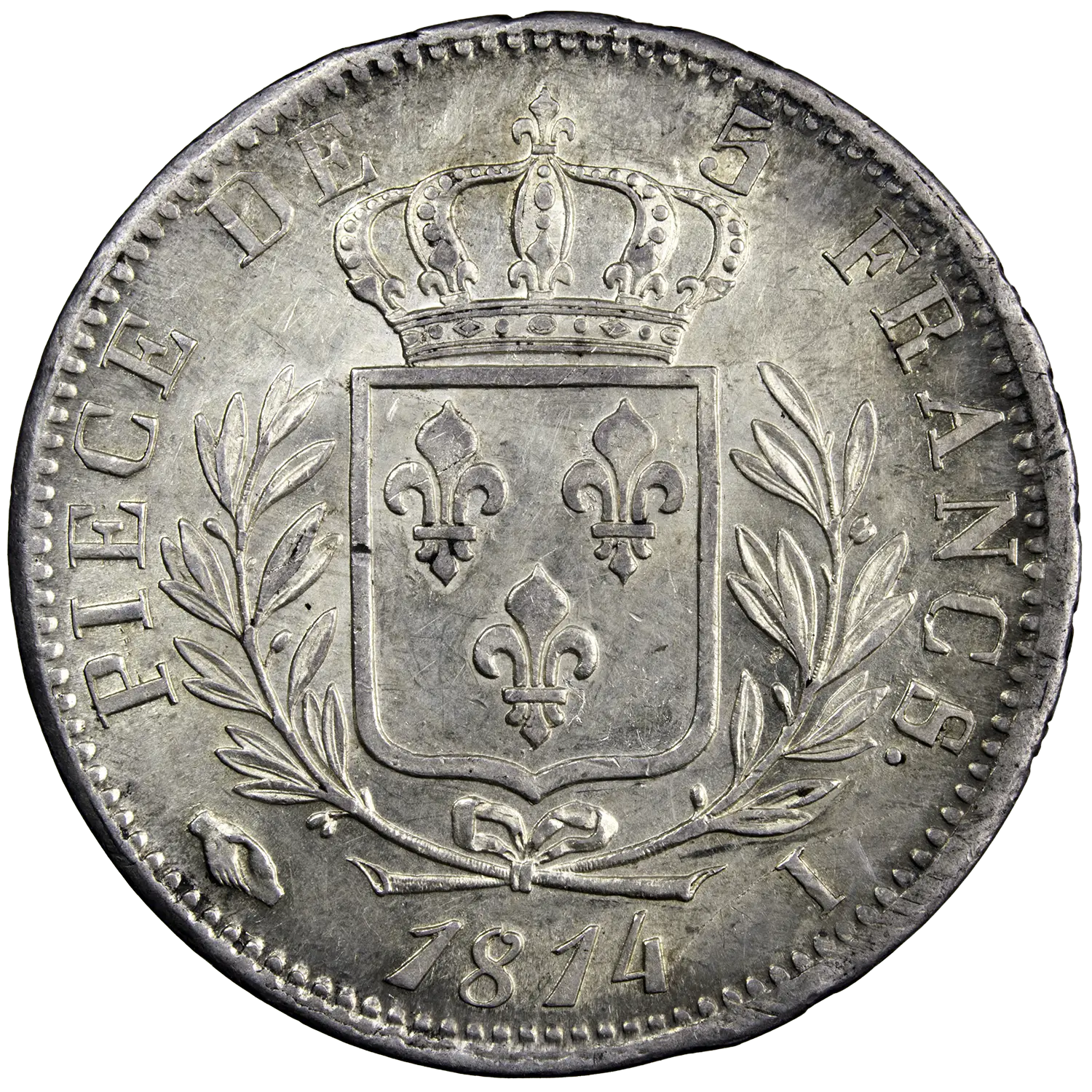 France – Louis XVIII, 5 Francs 1814, Limoges Mint (I). Silver coin of the ‘draped bust’ type. A superb example, well struck with attractive toning