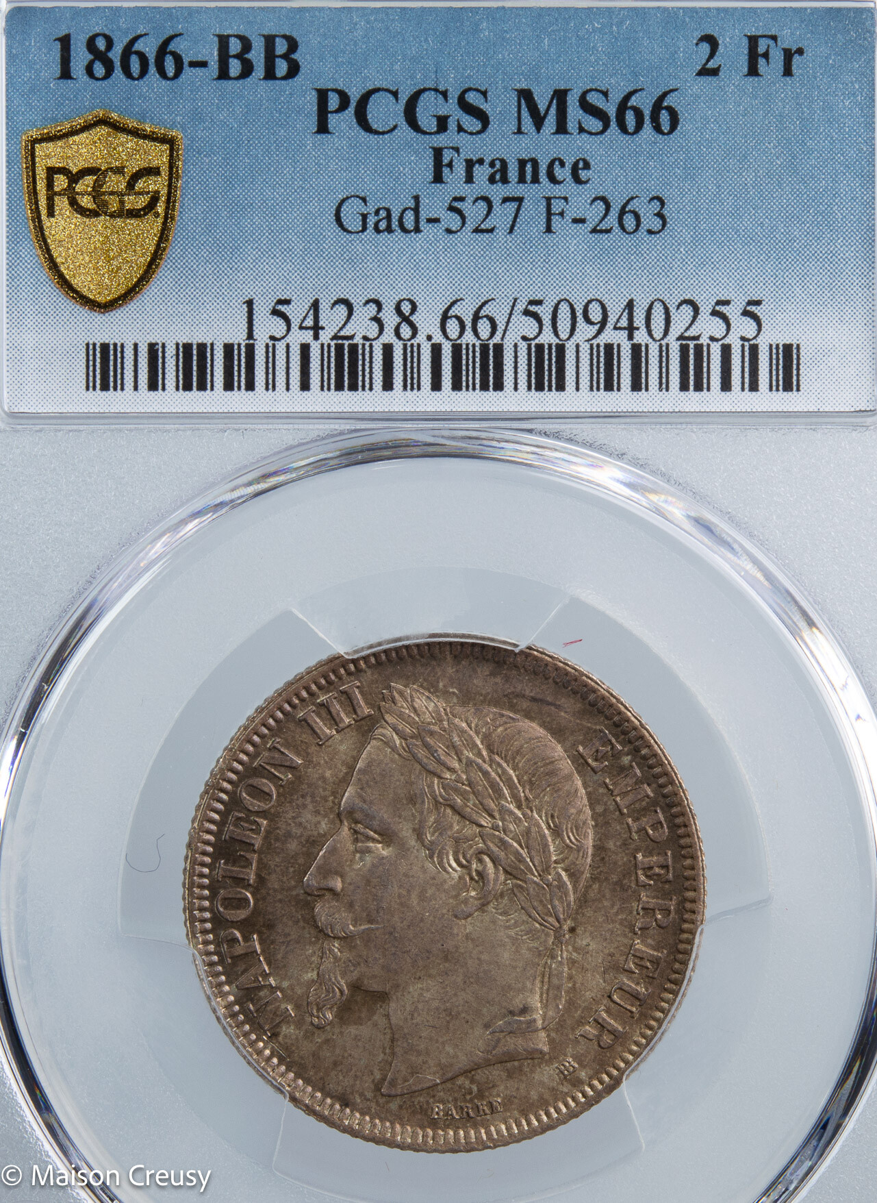Napoléon III 2 francs 1866 BB PCGS MS66
