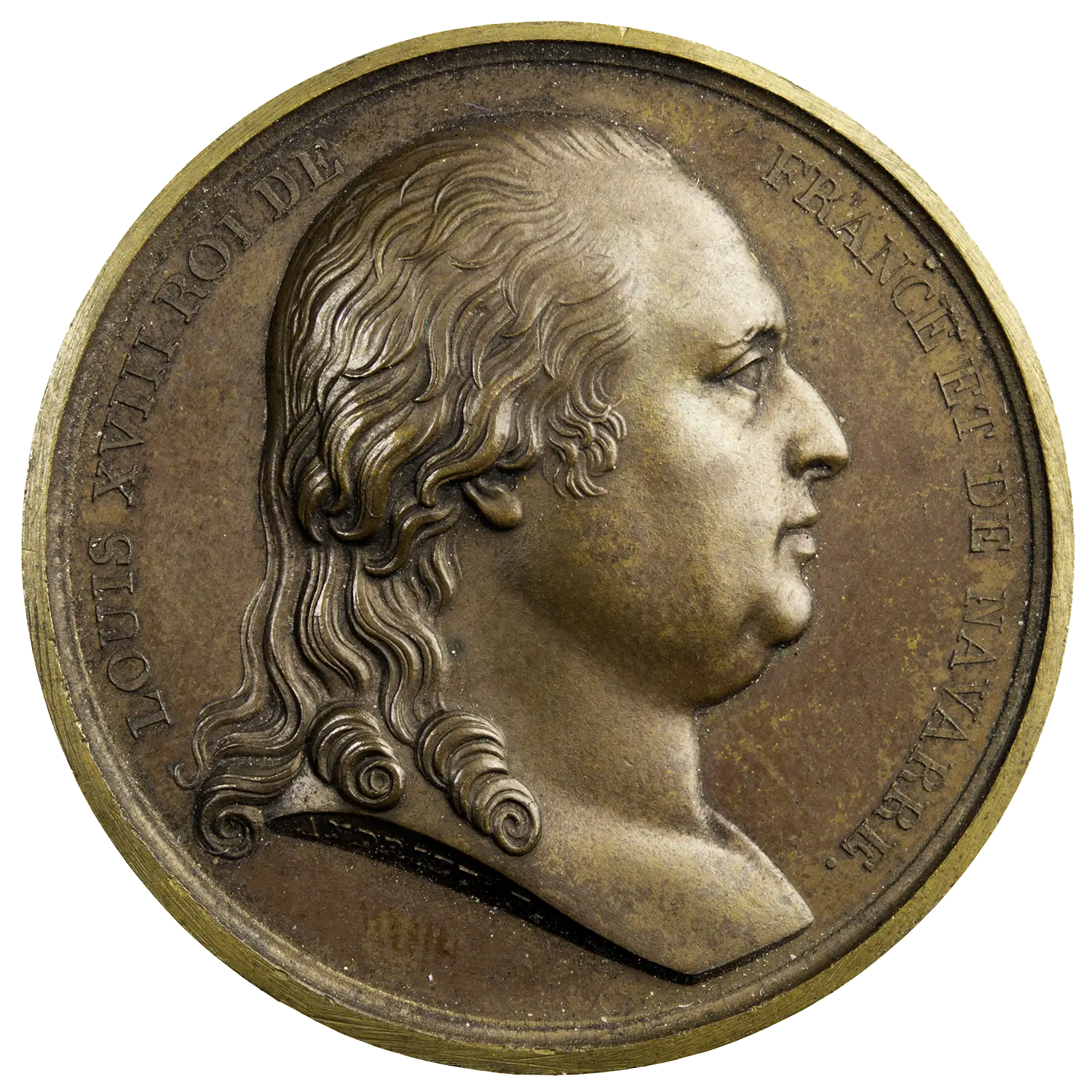 Bronze medal commemorating the entry of Louis XVIII into Paris in 1814. The obverse was engraved by Jean-Bertrand ANDRIEU (1761–1822) and the reverse by Nicolas-Guy-Antoine BRENET (1773–1846).