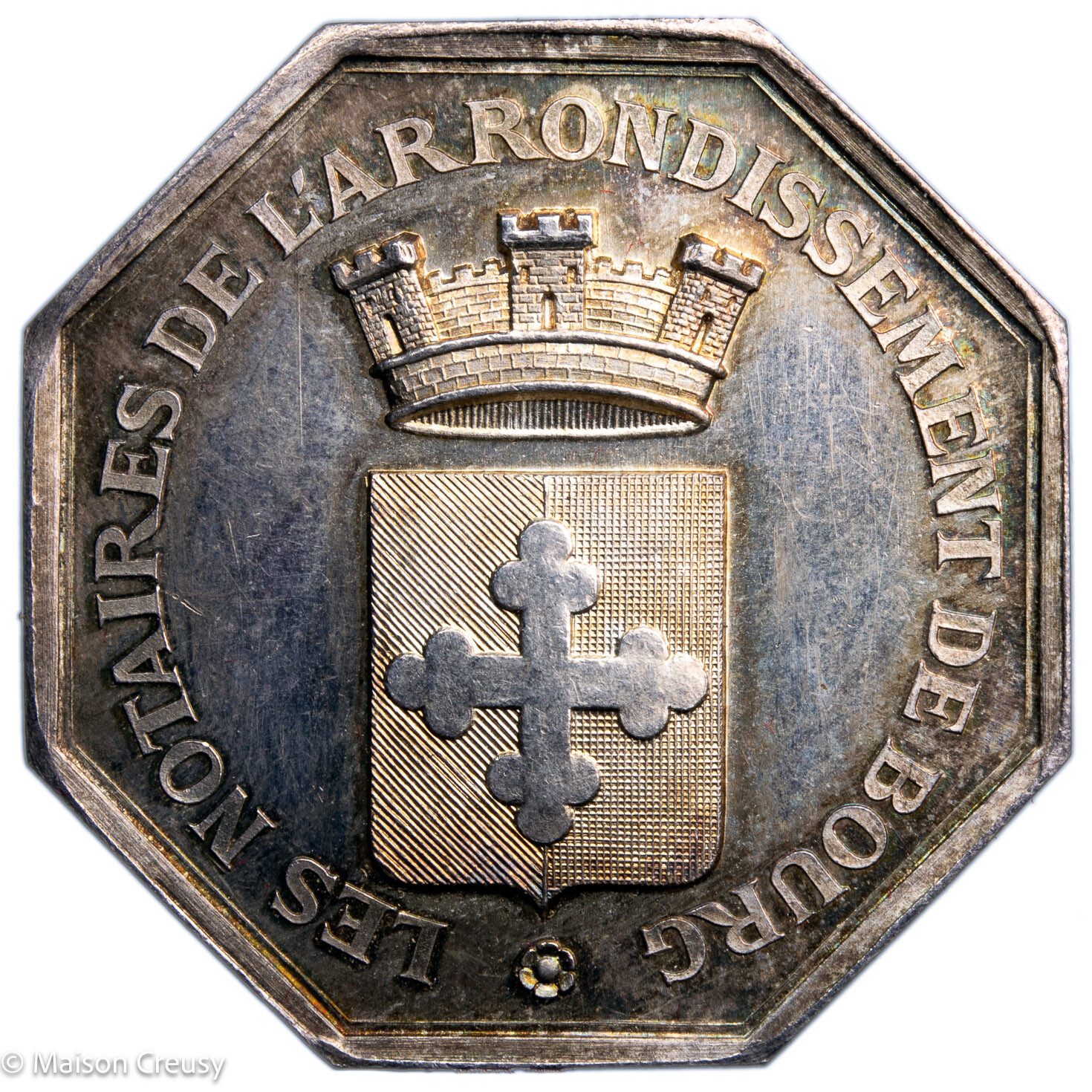 Octagonal silver token of the notaries of Bourg-en-Bresse, hallmark  SILVER. Open code on a scale on the reverse.