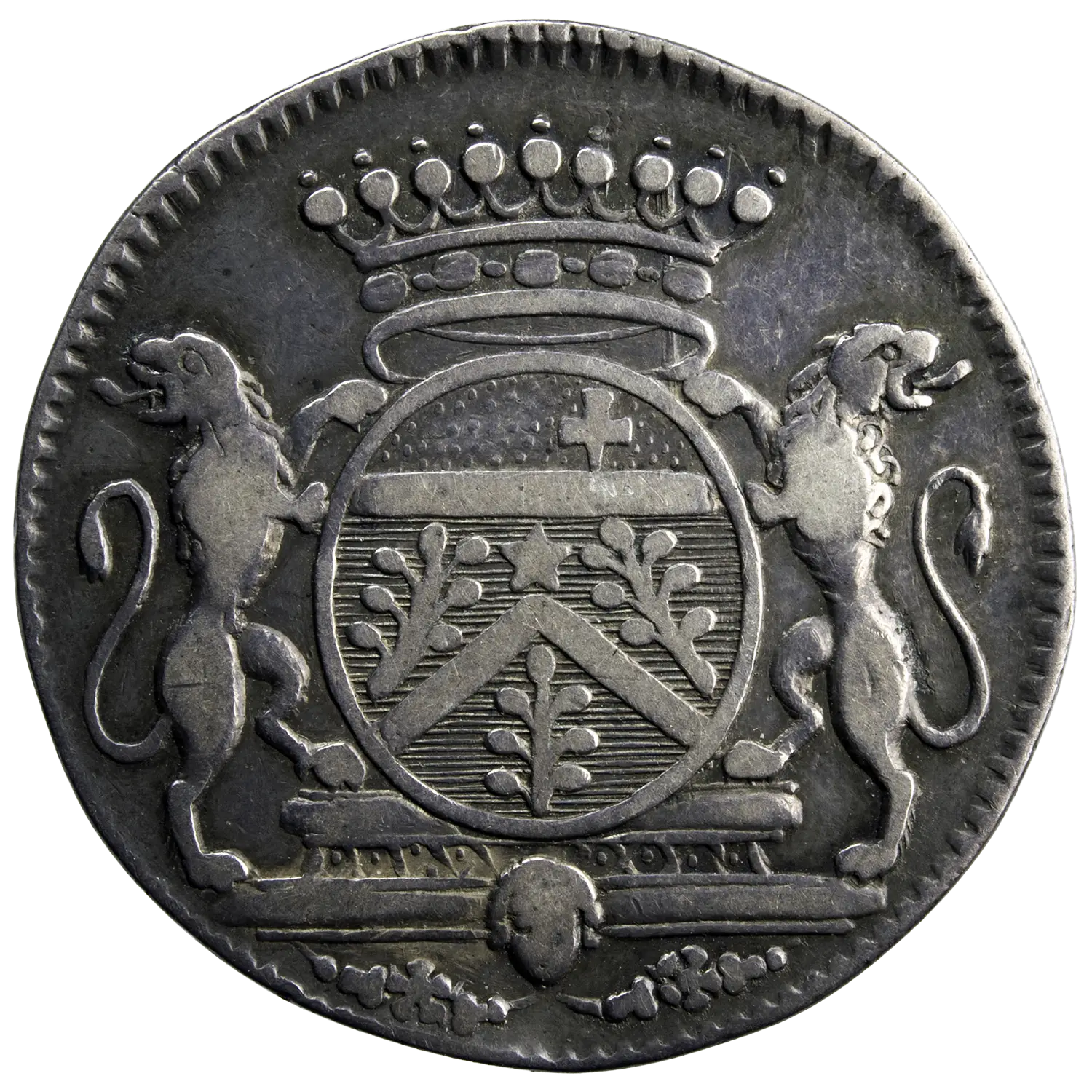 Very rare jeton with the arms of Monsieur Couturier de Fornoue (Nobility of Aquitaine). Arms of Couturier de Fornoue on the obverse and “MONSIEUR DE FOVRNOUE” on the reverse.