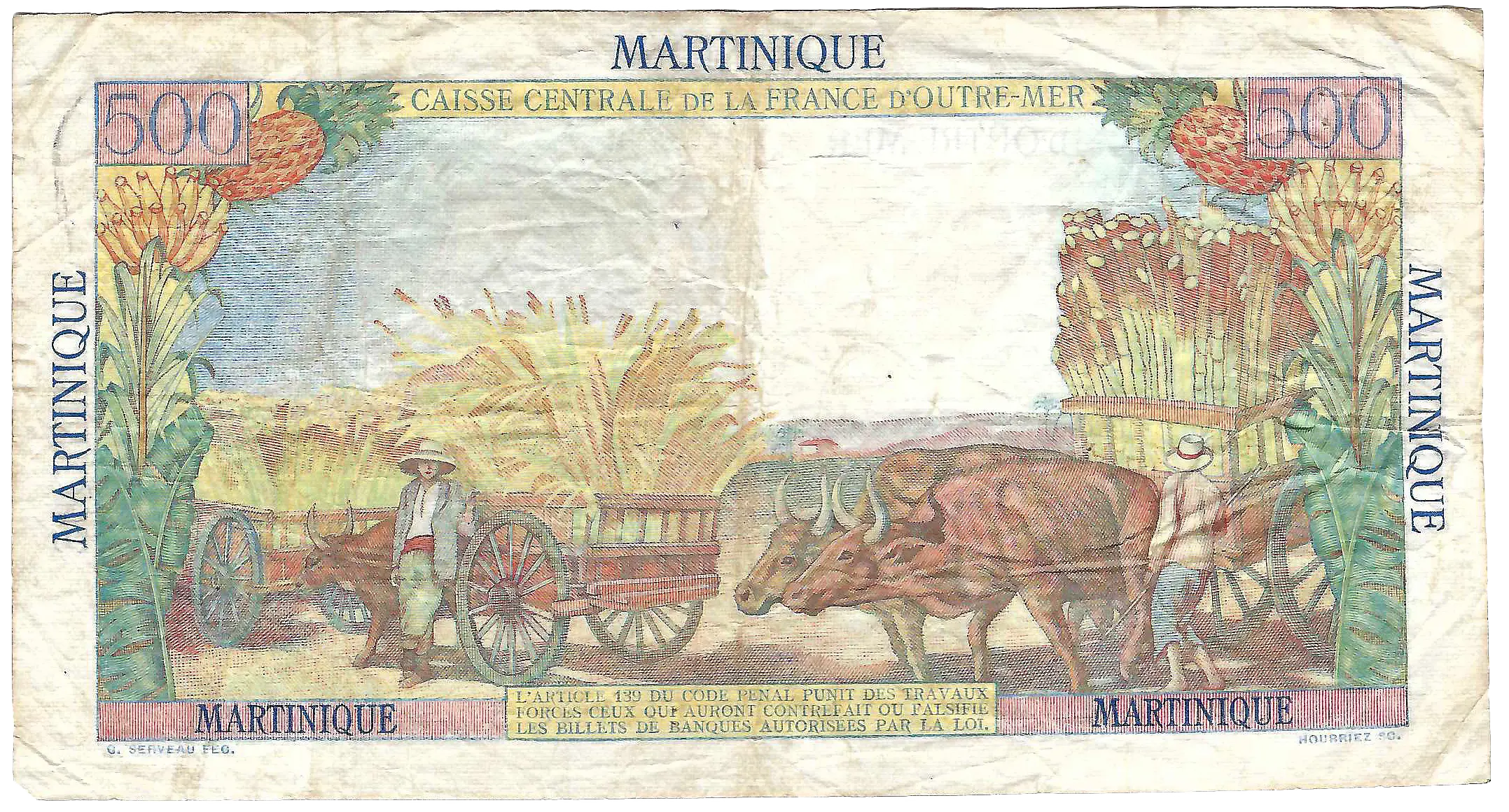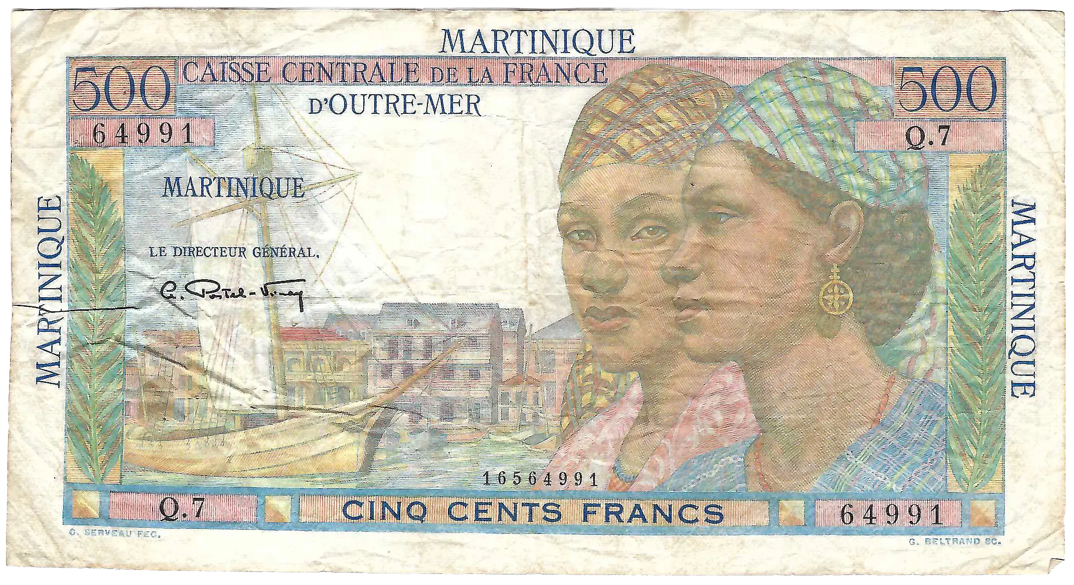 This banknote was part of the currency issued specifically for the French colonies, in this case for Martinique, one of the French Caribbean islands. Printed by the Caisse Centrale de la France d’Outre-Mer (Central Treasury of Overseas France), it reflects the financial structures that supported colonial trade and administration in the mid-20th century. Such notes not only served as legal tender but also embodied the economic and political ties between France and its overseas territories.