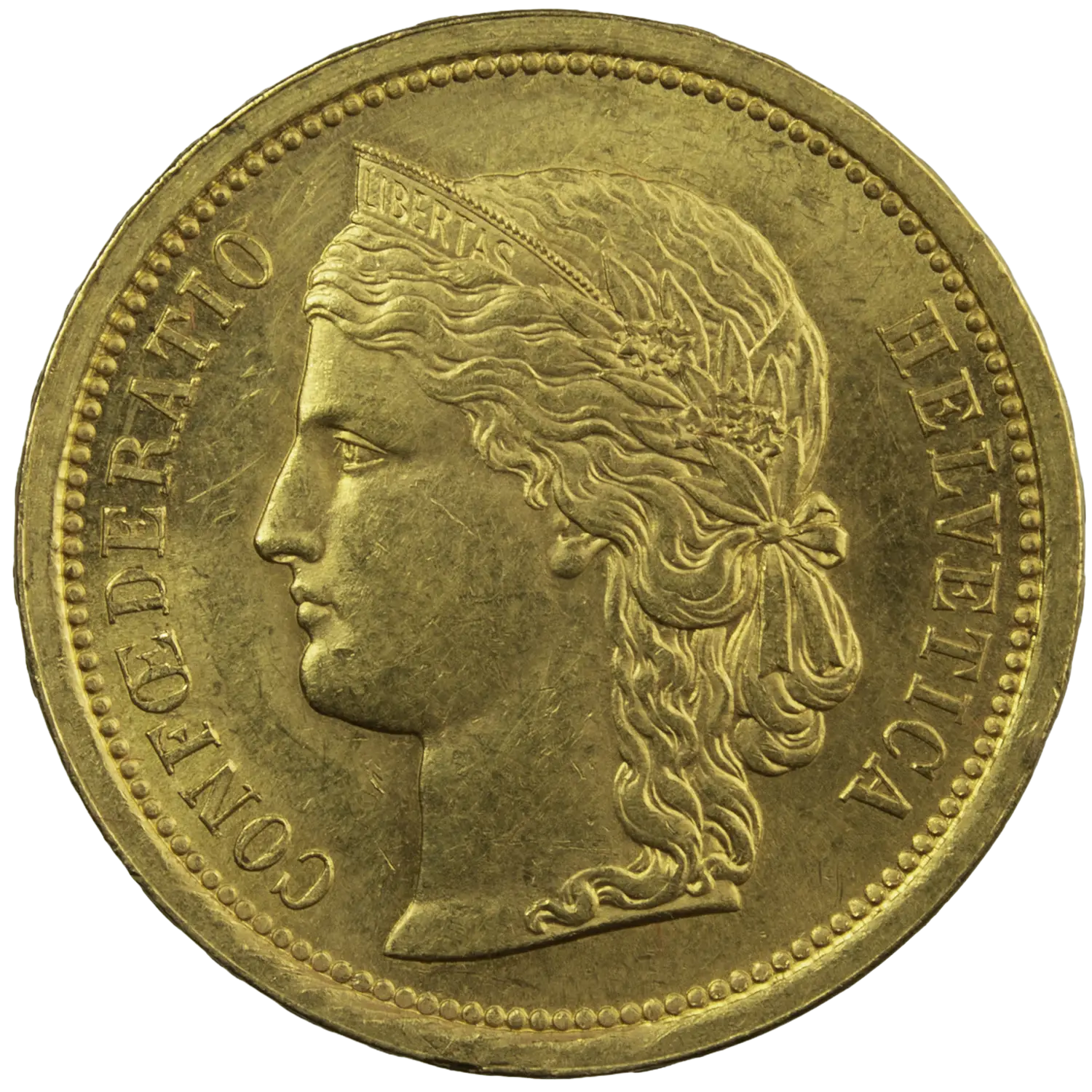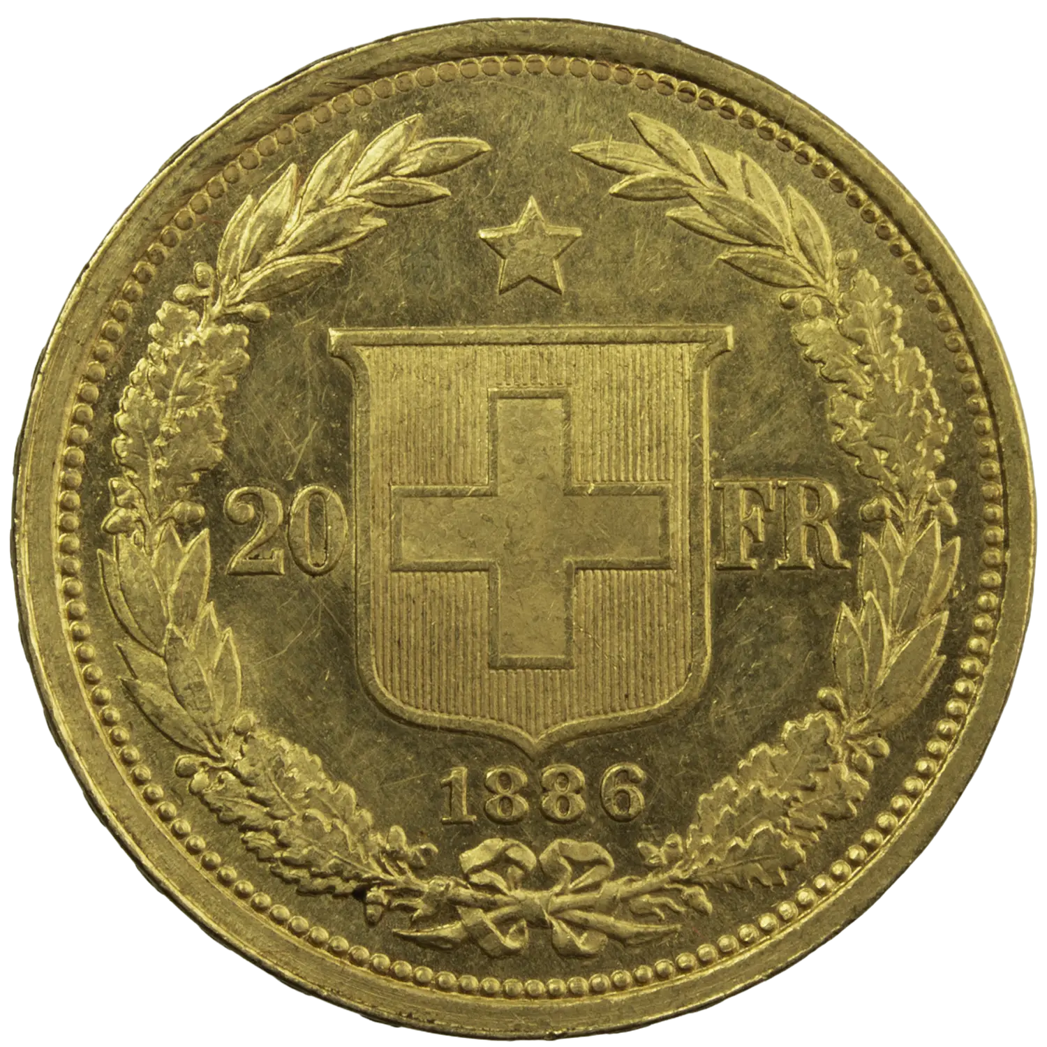 Superb Swiss 20 Francs gold coin, minted in 1886 in Bern. Only 250,000 pieces were struck.